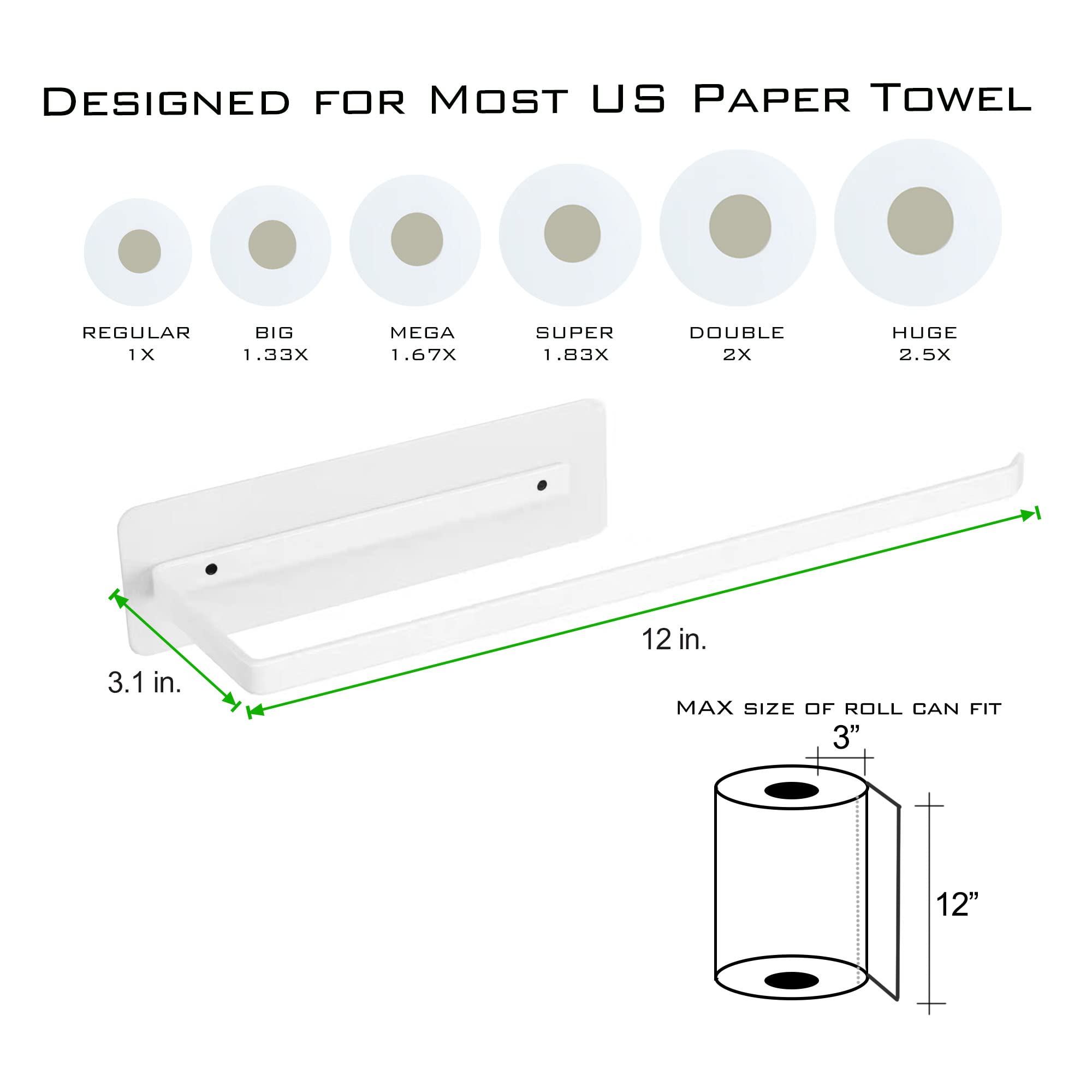 Fit Most Size Paper Towels - The magnetic paper towel holder measures 12”(L) x 3”(H), suitable for US regular,big,even Huge Paper Towels bought in general supermarkets.