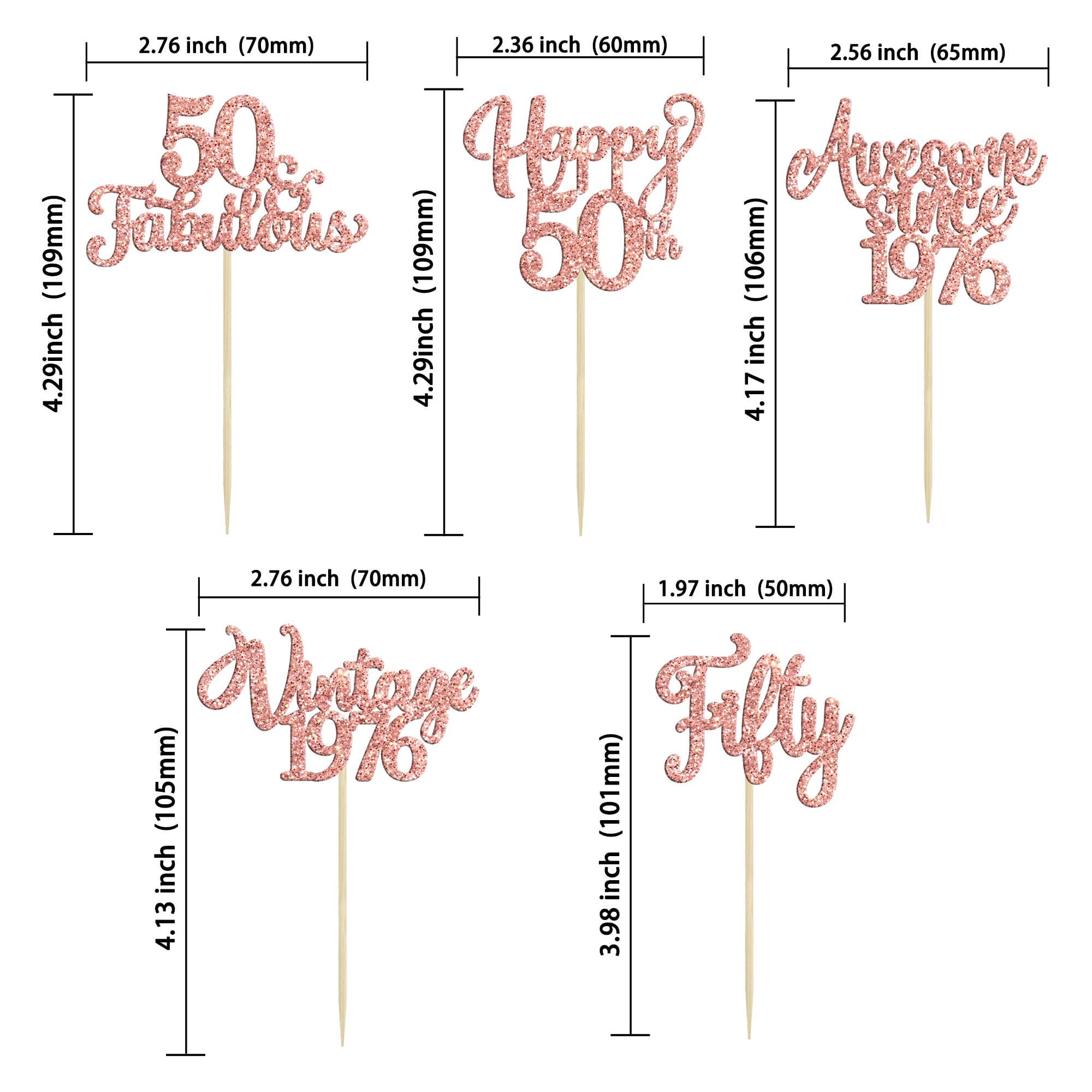Material and Usage - Usage: They are perfect for vintage 1975 theme party, 50th birthday theme party, 50th wedding anniversary theme party,cheers to 50 years theme party cupcake decorations, which make the cupcake look tastier and more attractive. - Material: Made of paper material, solid, not easy to deform and fade and can reuse for many times; Please don't put them into oven for they are only decorative and not edible. Package and Size - Package: Pack of 30Pcs. Size: W 2.4"*H 3.9"/W 6*H 10cm(Include Stick). Comes with assembled, so you can insert into your cake directly, which make your cake more interesting. - If you want to return the item, please kindly contact us first, then we will deal with it until you are satisfied. Note 1.The cupcake topper picks have pointed end, please keep away from children when using. 2. These cupcake toppers are for decoration purposes only, not edible and do not place in oven or use for baking. 3. Due to the light and screen difference, the item's color may be slightly different from the pictures.