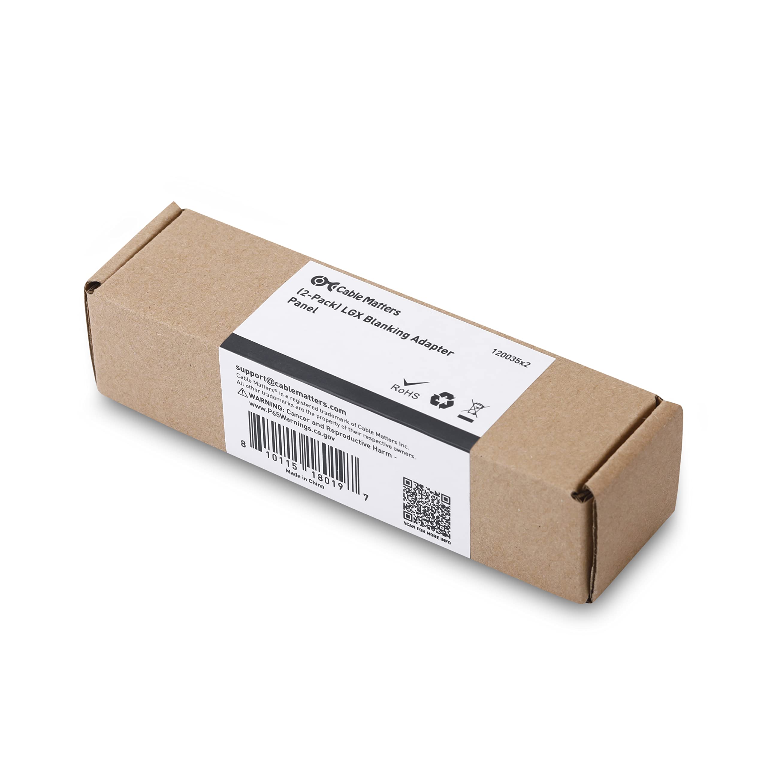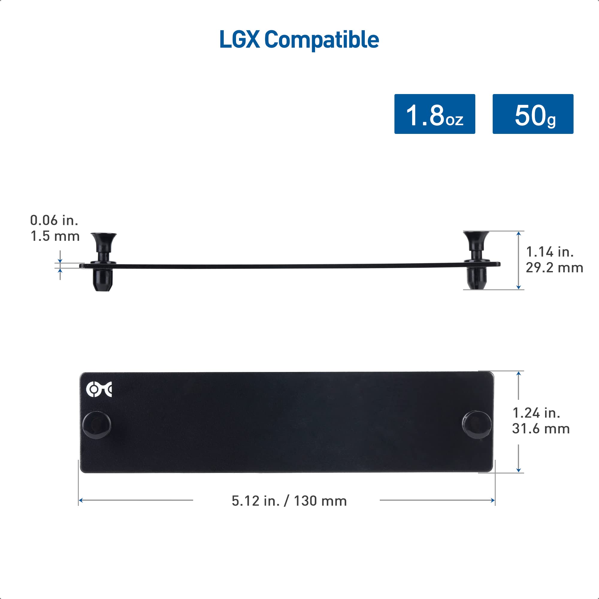 This LGX cover plate is compatible with standard-sized LGX openings including the Cable Matters 1U 19'' Blank Patch Panel for LGX Adapter (SKU: 120034)