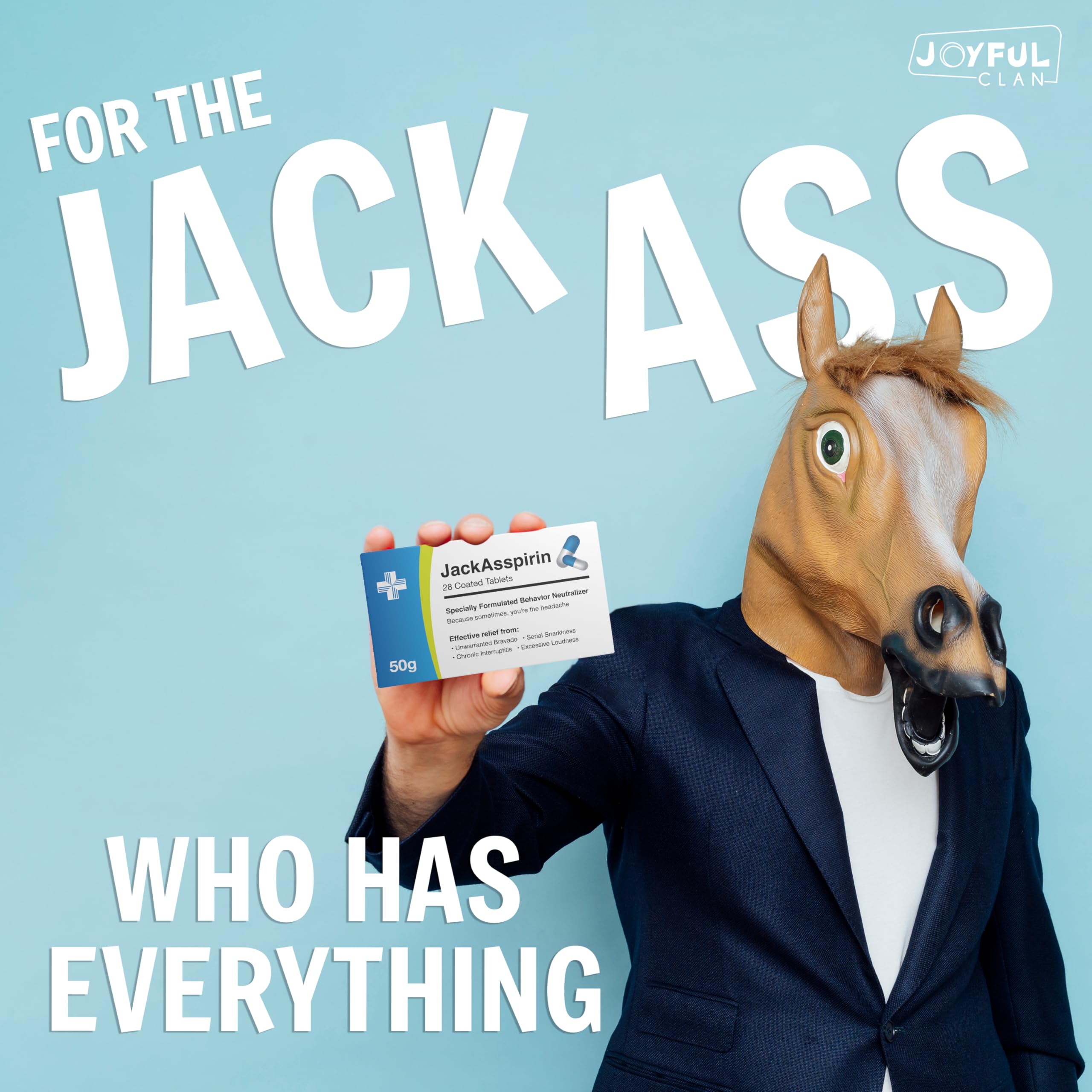 SPECIALLY FORMULATED BEHAVIOR NEUTRALIZER - say goodbye to unwarranted bravado and chronic interruptitis with JackA**pirin's potent formula. Designed to combat even the most stubborn cases of jackassery with a hearty dose of humor, this gag gift is sure to keep the laughs flowing long after the recipient has got the message you’re ‘subtly’ trying to tell them