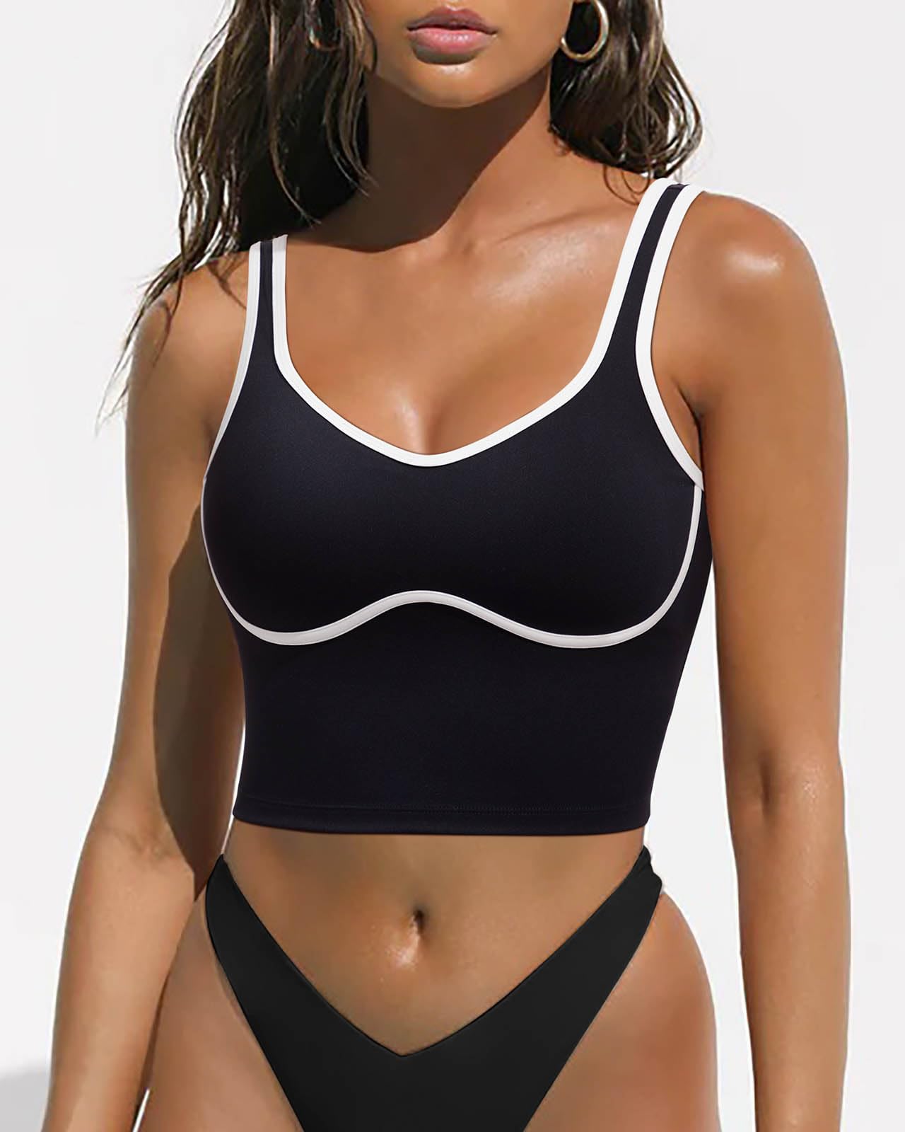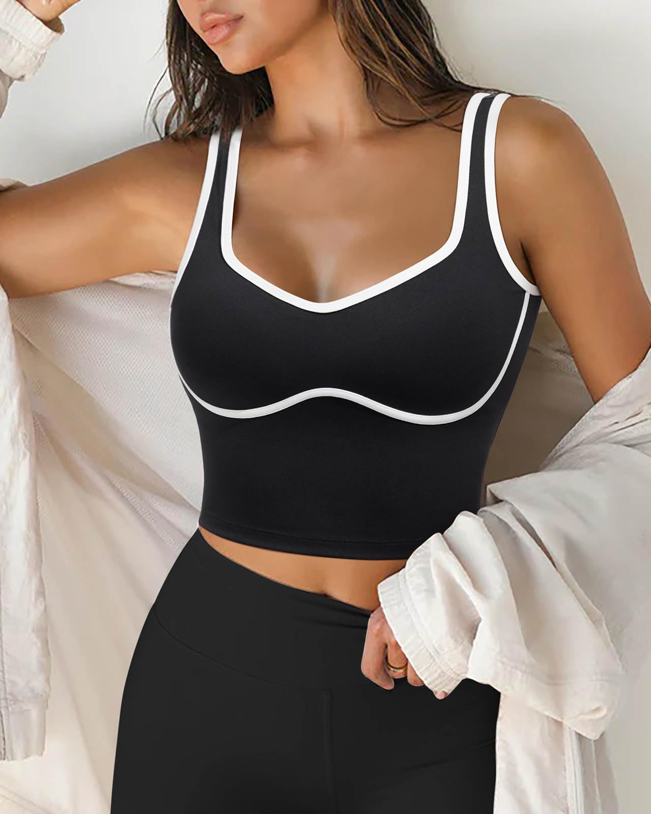 Sweetheart Neckline Sports Bra: Slimming fitted workout gym tops, Thick wide strap compression tank tops, Athleisure loungewear cami tops