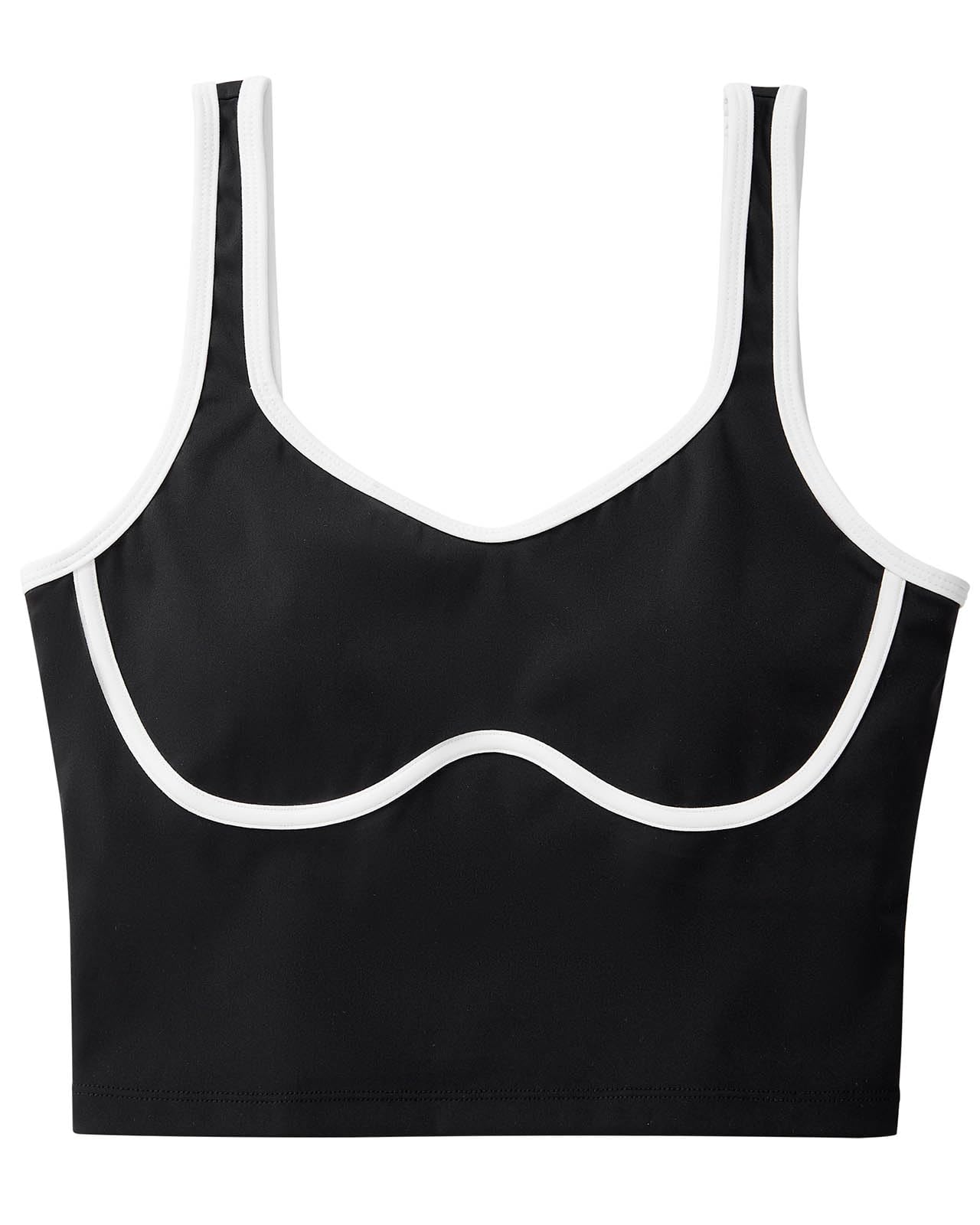 Seamed Underbust Padded Crop Tops: Wireless push up workout tops, Medium impact supportive sports bra with built in bra