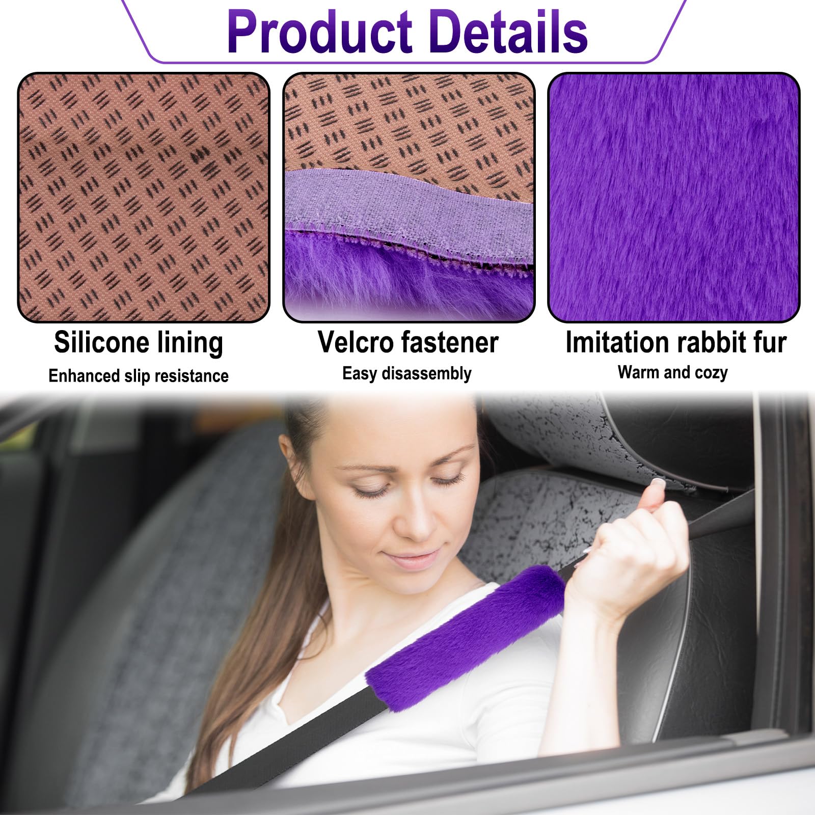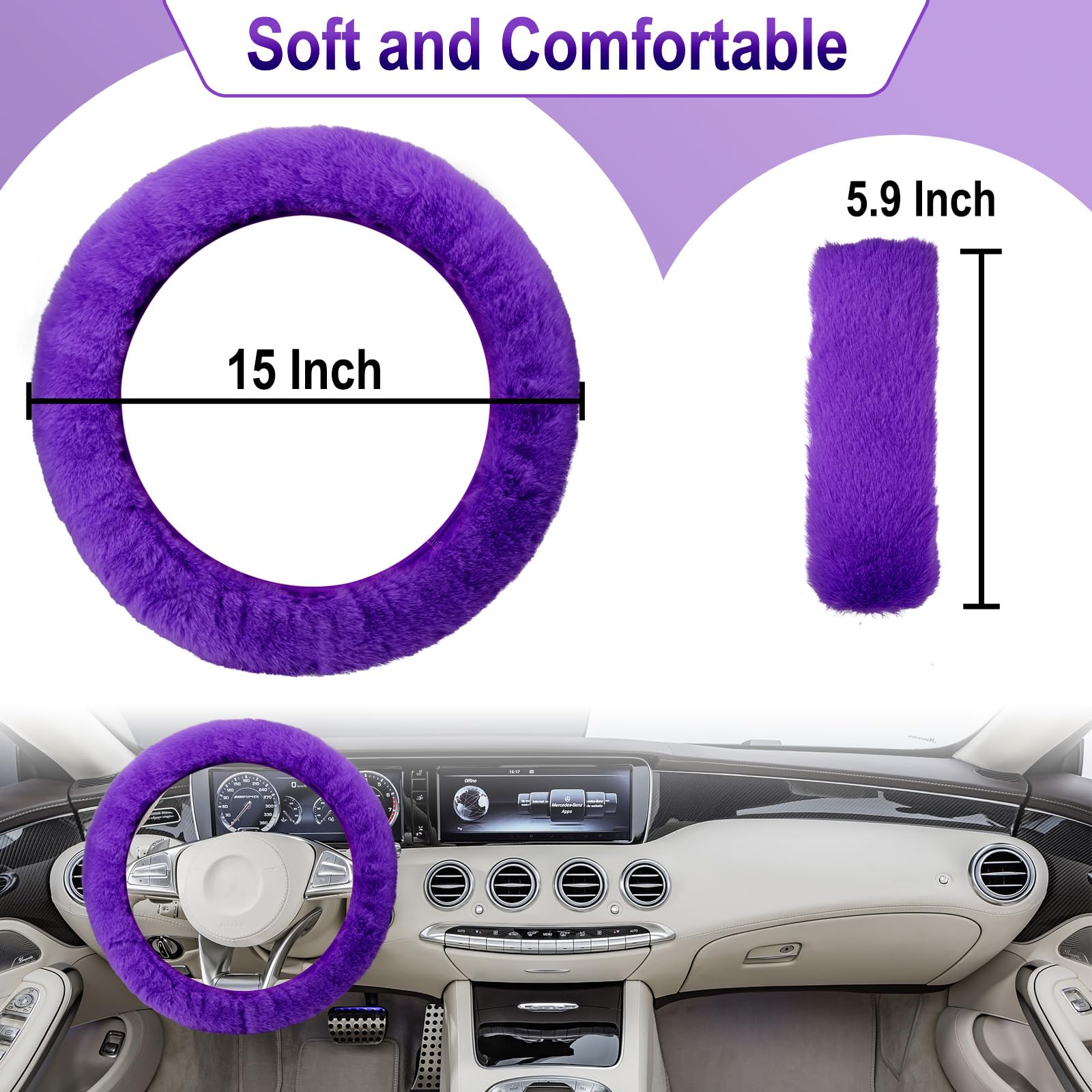 Package Contents: You will receive a package containing three furry car accessories, including 1 plush car steering wheel cover with a diameter of 15 inches, 2 seat belt shoulder pads with a length of 5.9 inches. They are mounted on different car interior parts to suit your usage needs