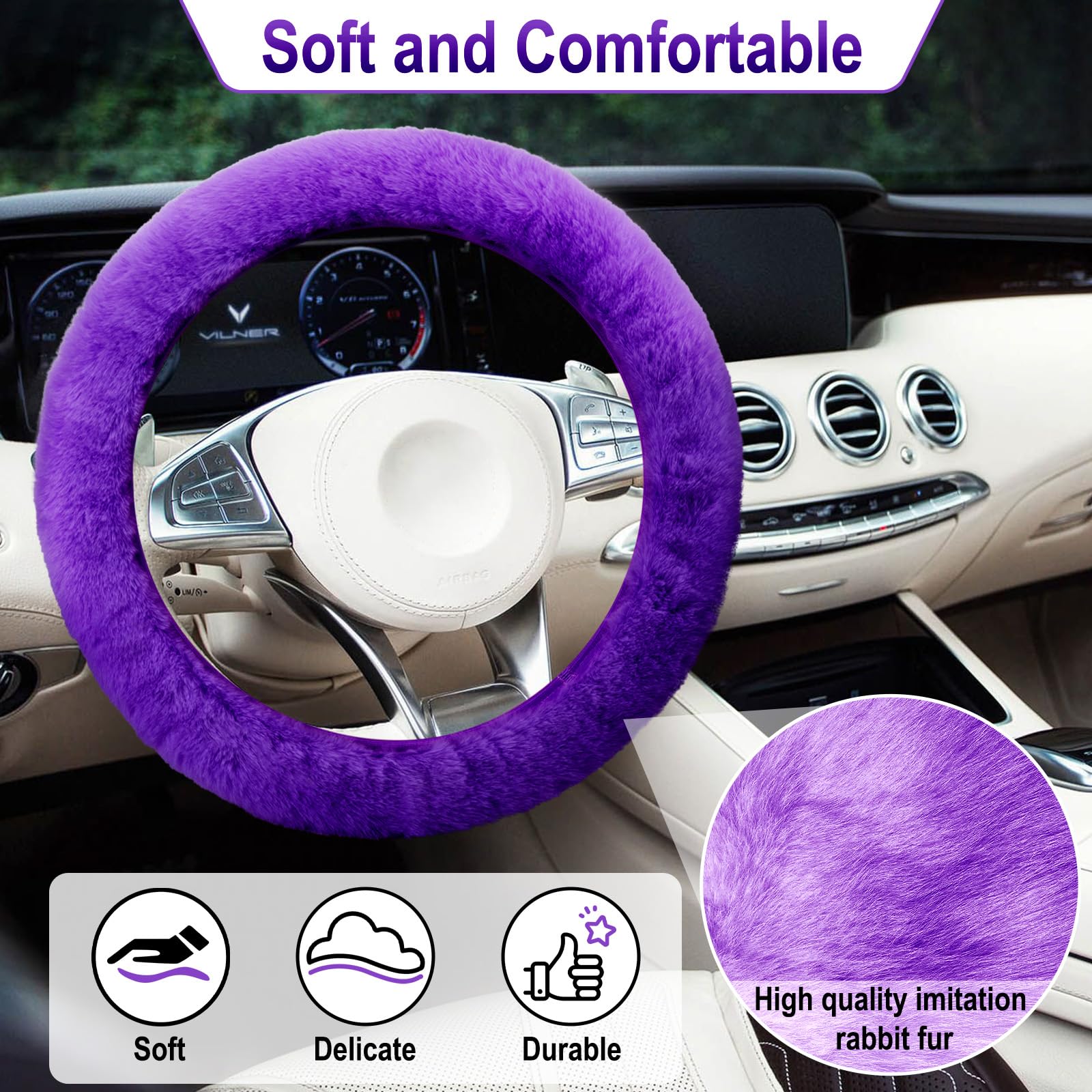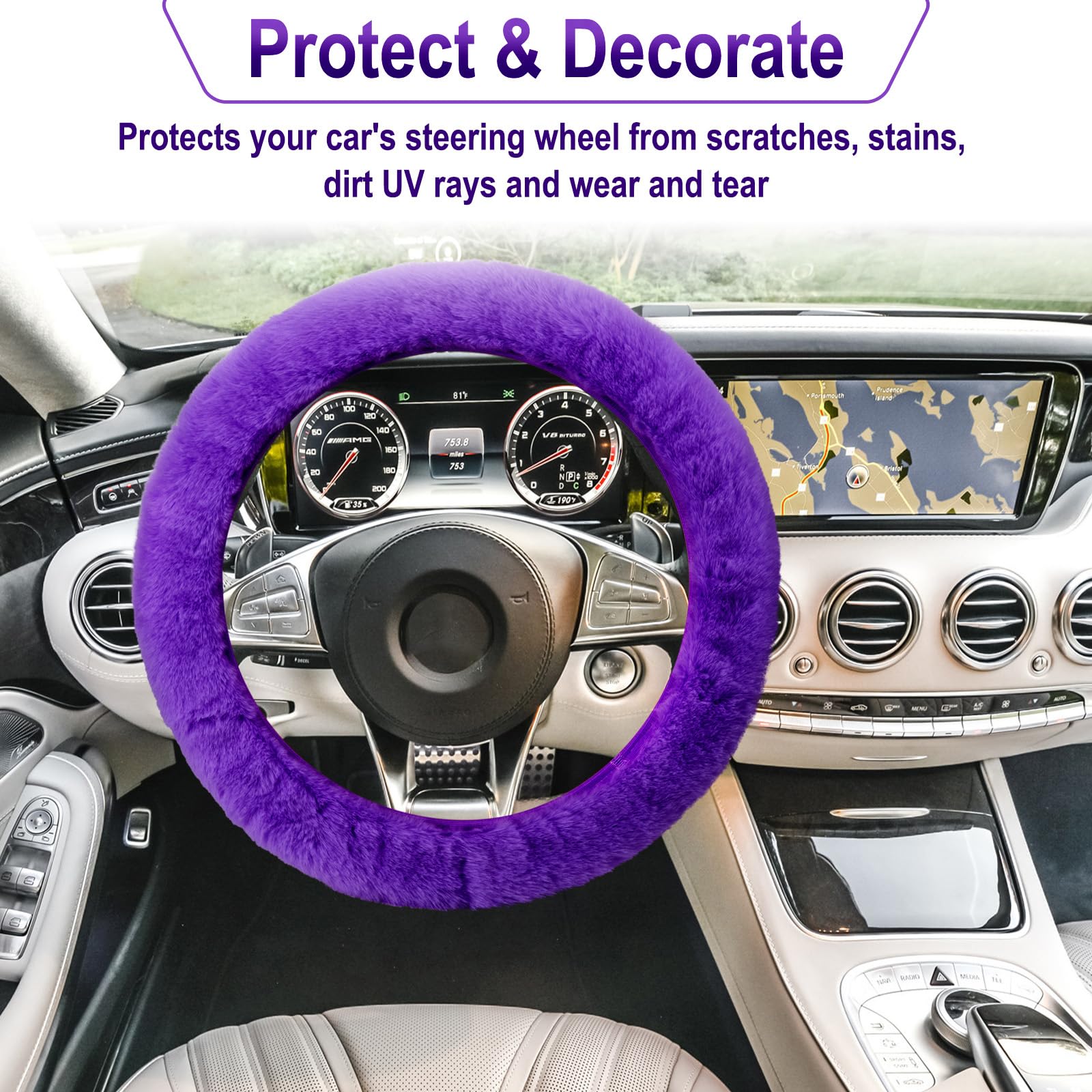 Protect & Decorate: Fuzzy steering wheel cover will protect your car steering wheel from previous and existing scratches, stains, dirt, wear, UV rays and tear. It will better improve the appearance of old or dirty steering wheel. In addition, it can also make your car look more attractive and noble