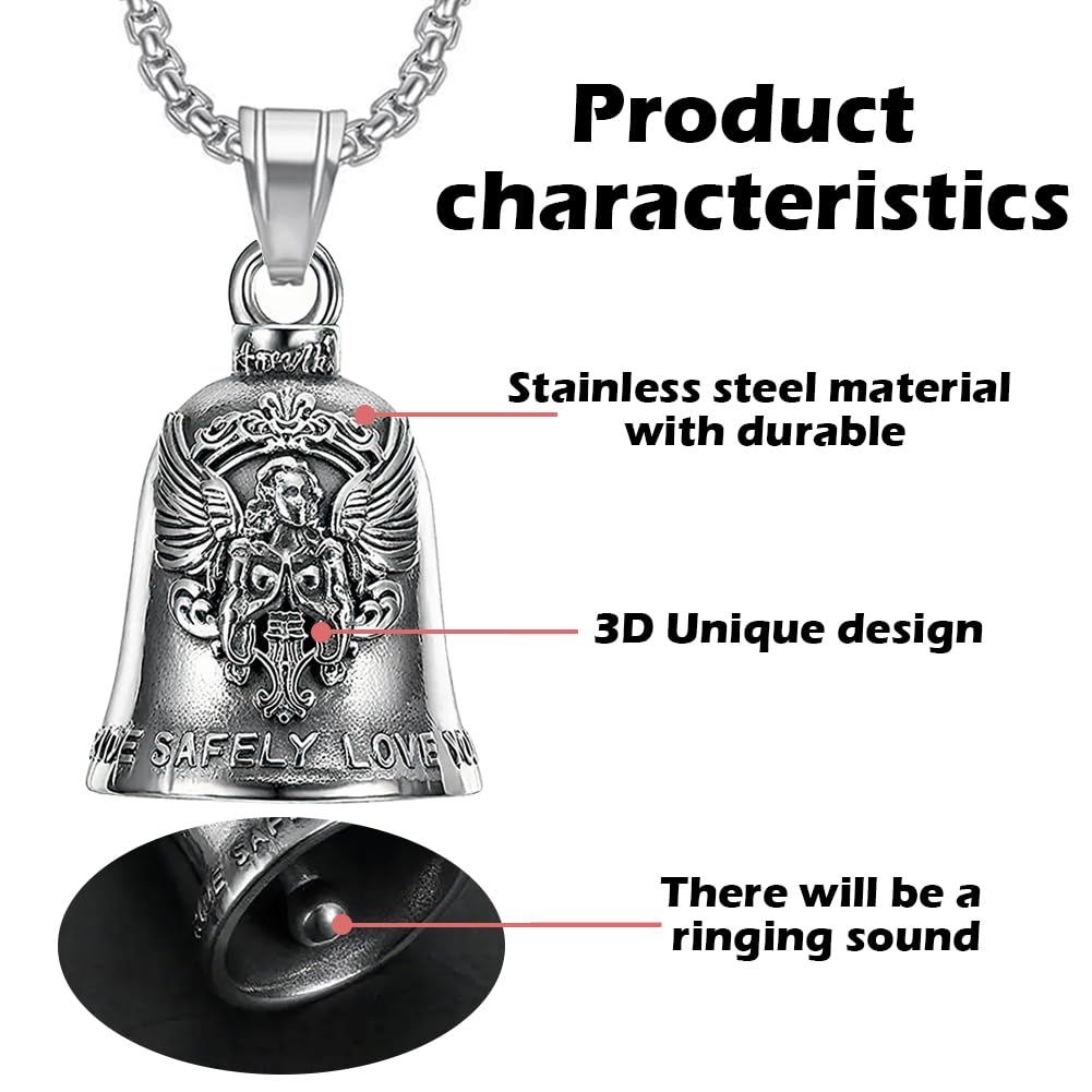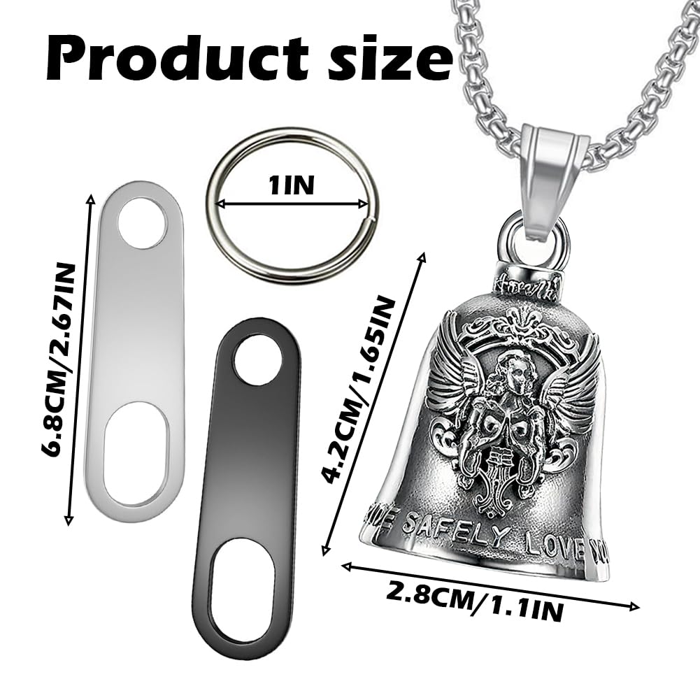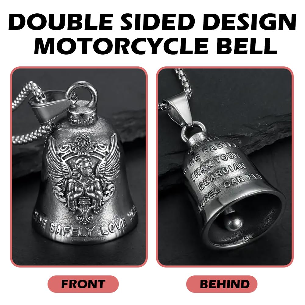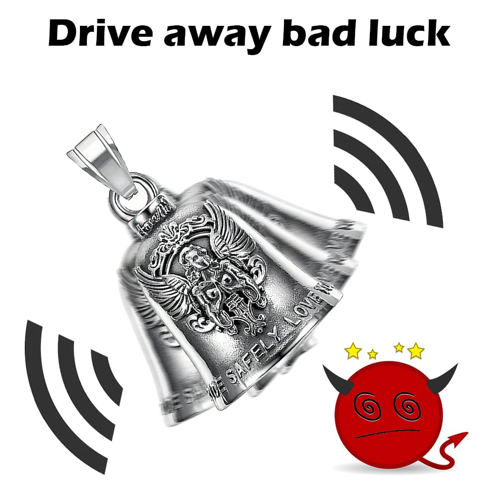 Description Never ride faster than your angel can fly, the evil road spirits of the road will be trapped in the bell. Please remember the good old time friends, drive safe, not only me, but all the people who love you need you here with us, so never stop jingling! Whether you're a beginner or a pro, never ride without this guardian angel bell! It's said that the sound of a bell protects you from harm and brings good luck. This powerful bell is said to exorcise evil spirits and protect you from harm. Hang it on your motorcycle & bike or wear it to ensure a safe and lucky journey.