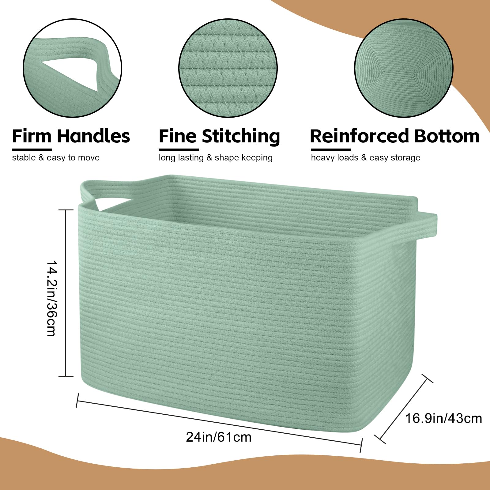Extra Large Basket for Blankets: 24"L x 16.9"W x 14.2"H, this storage basket with 95L large capacity is perfect for storing blankets, pillows, toys, clothes and stuffed animals. Making your blanket storage for living room becomes easy and convenient