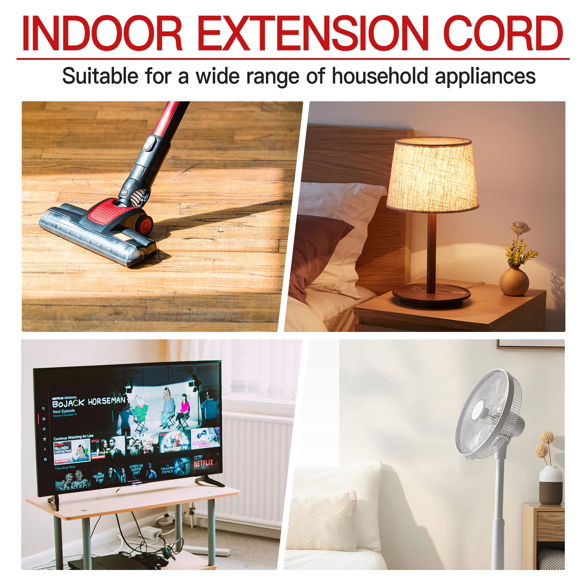 Versatile Indoor Use: Indoor extension cord 10ft are ideal for home offices, living rooms, bedrooms and studios; black extension cord safely power lamps, computers, printers and small appliances; extension cord 10 foot should be kept away moisture, heat or direct sunlight