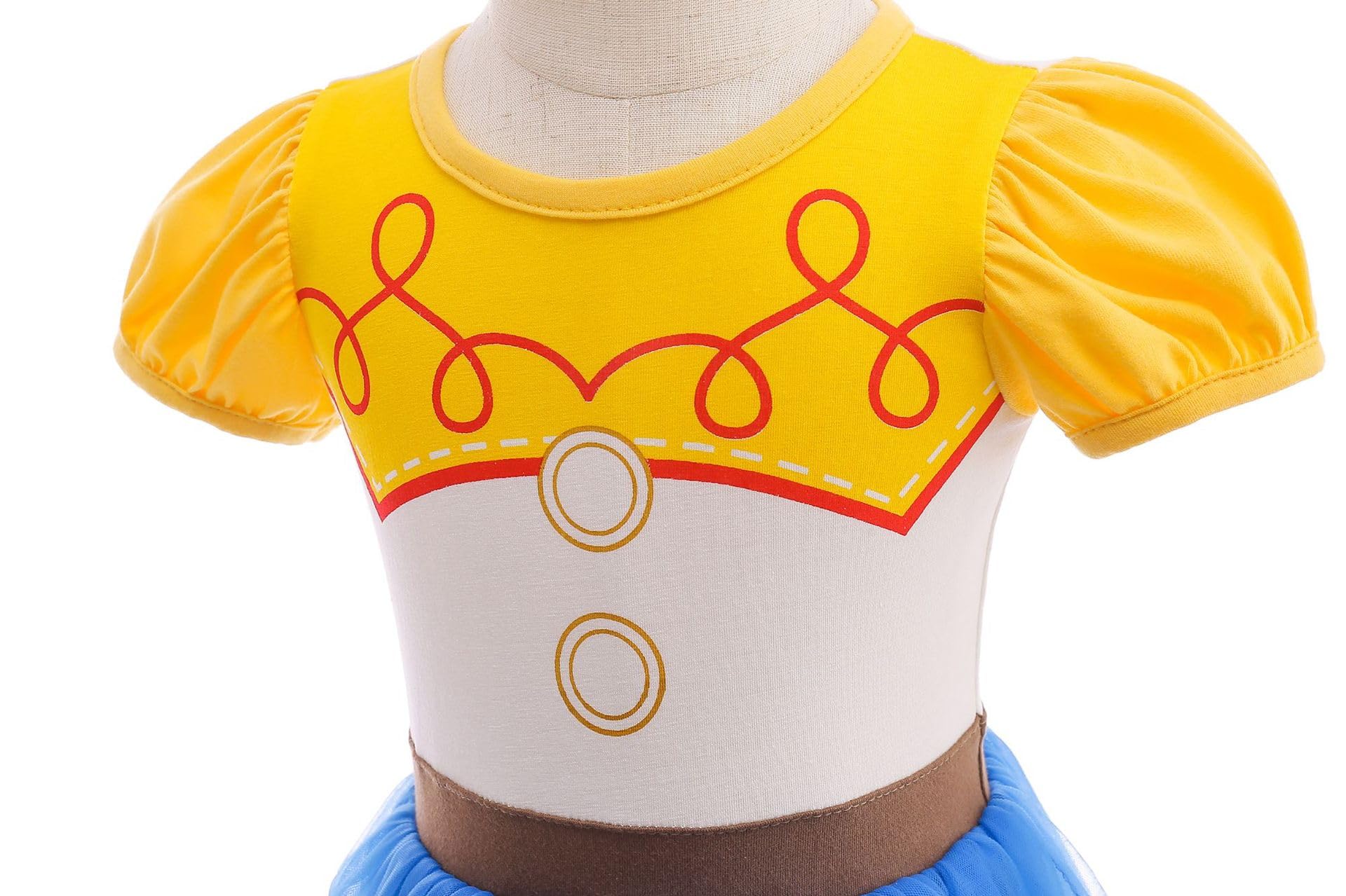 Baby girls princess jessie costume dressed with classic character, It features realistic details with cuffs, the skirt is stacked with layers of cake skirt