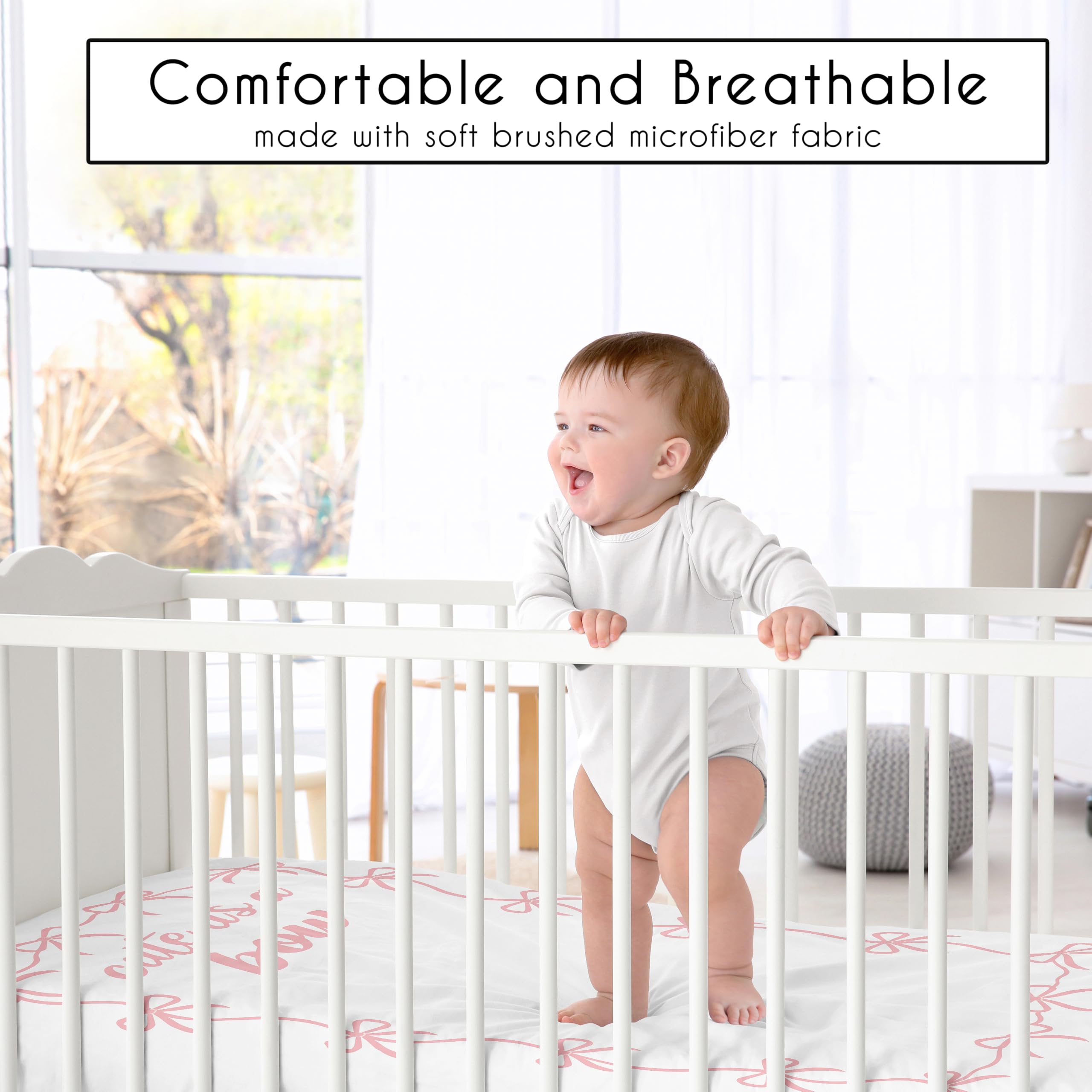 PERFECT GIFT: Add baby girl crib sheets to your list of must haves! Including a baby fitted crib sheet on your gift registry, in a baby shower gift basket or as a gender reveal present is an easy way to prepare for a baby's arrival. Whether it's nap time, bedtime, or an unexpected mess, having extras of these baby mattress sheets make changes effortless so you can focus on what matters most to you and your family. And remember, you can never have too many baby crib sheets or toddler bed sheets!