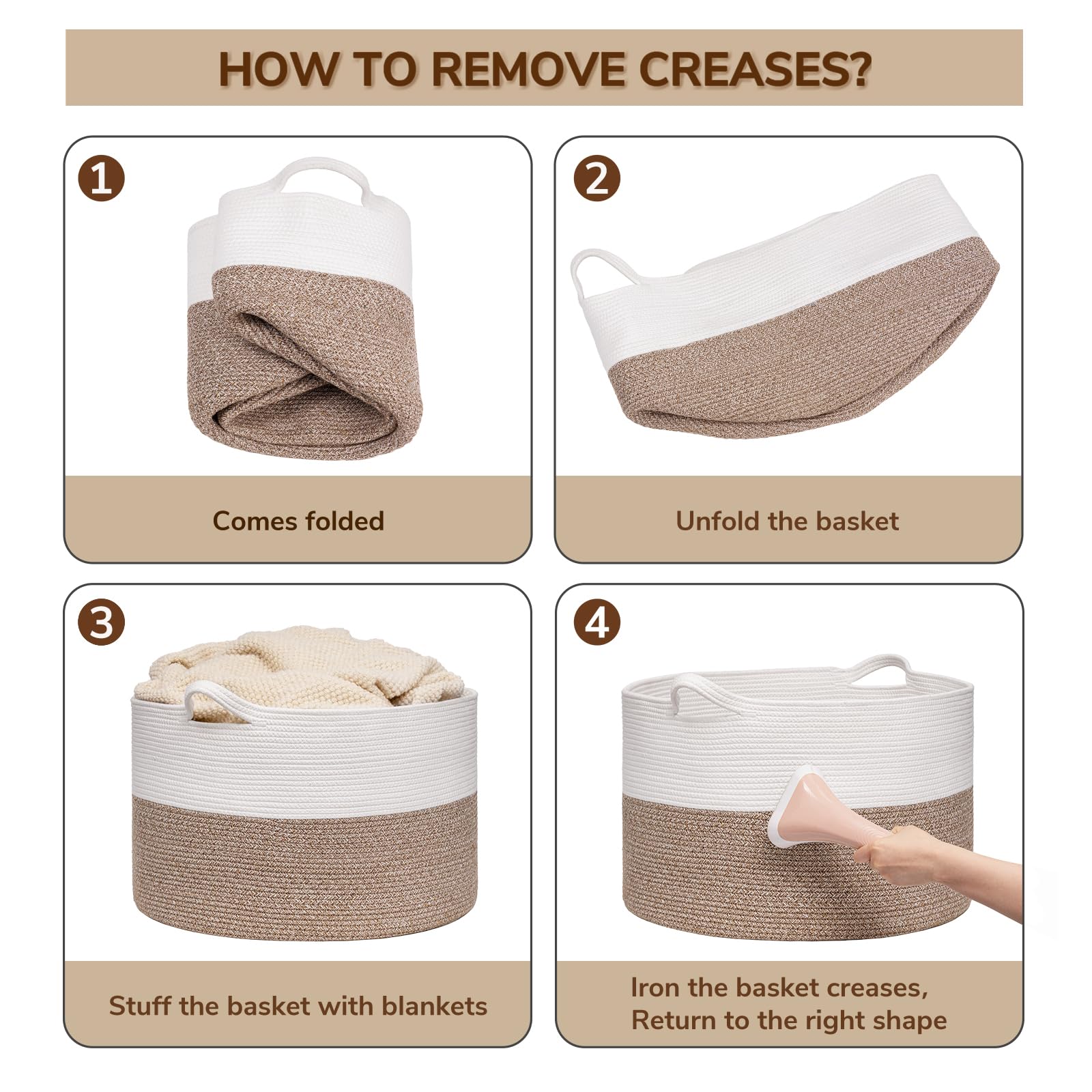 Note. This large storage bin is folded in shipping. It will turn back to its round shape quickly by filling it with towels or blankets, and ironing is a great idea to regain the creases