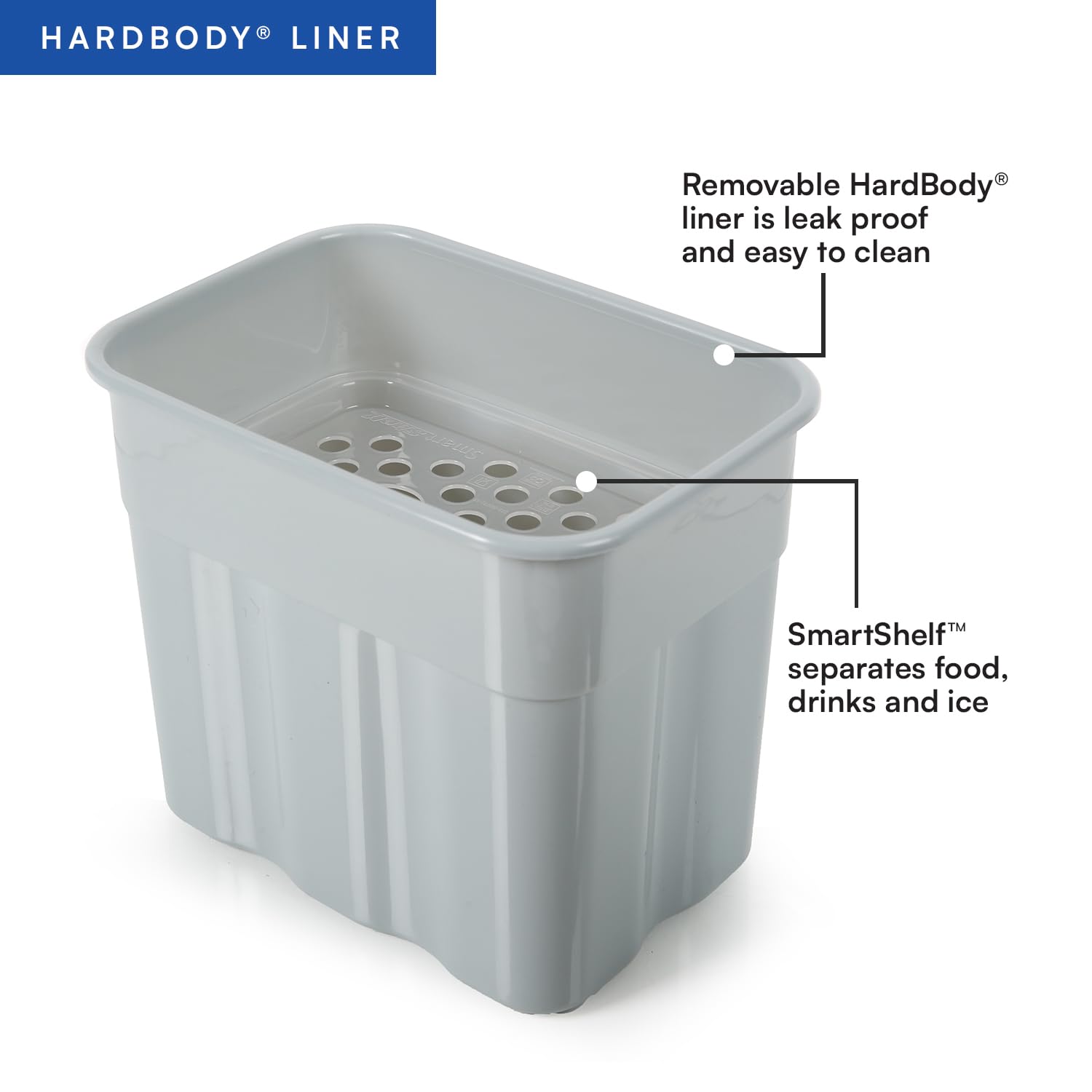HARDBODY LINER WITH SMARTSHELF: Includes a removable HardBody liner with SmartShelf that allows you to separate hard items from soft so sandwiches and other soft foods don't get crushed; SmartShelf easily removes for extra space