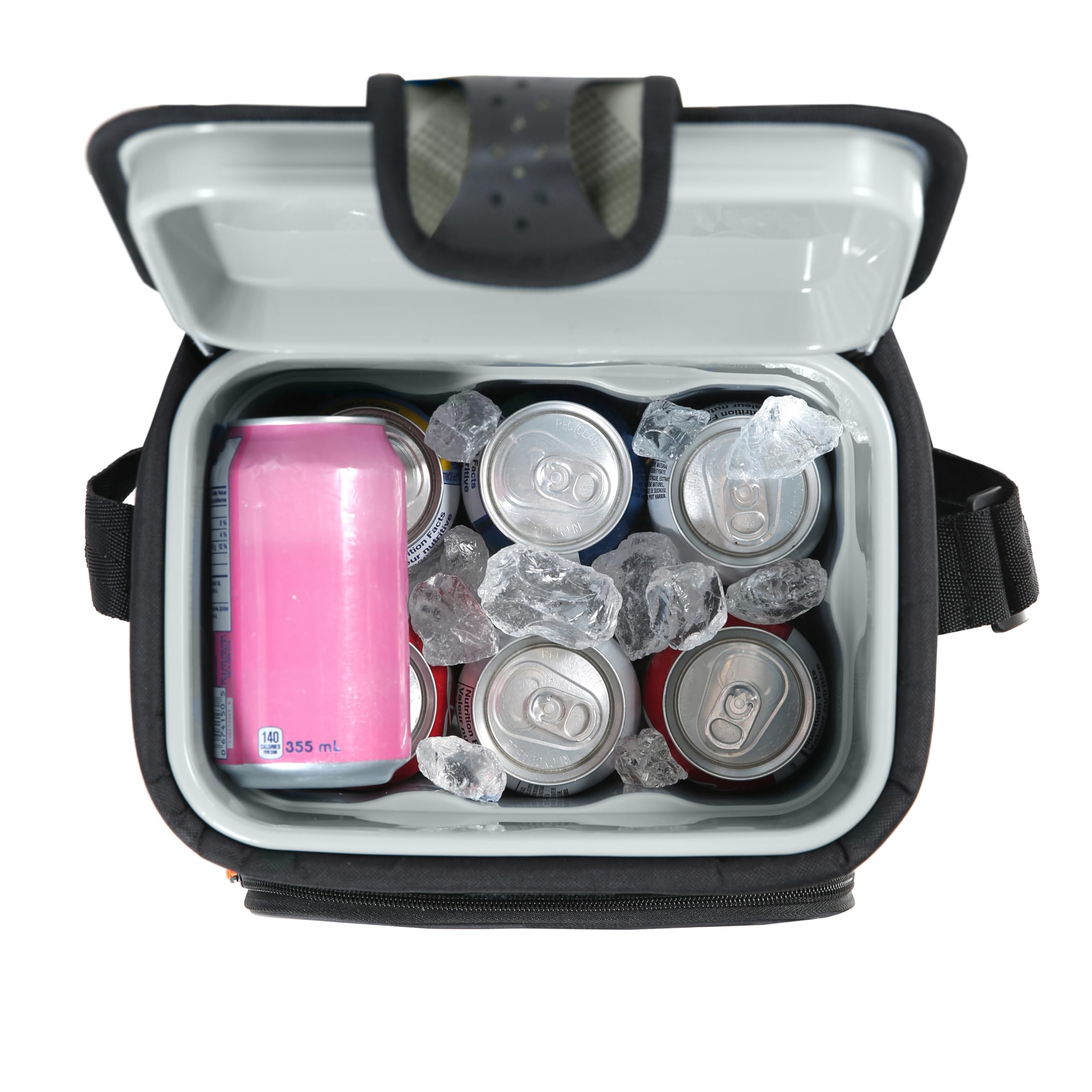 9 CAN CAPACITY: Cooler measures 9.5 x 9.75 x 8 inches with room for up to nine cans; suitable for packing drinks and snacks for lunches, day trips, beach outings, tailgates, and more