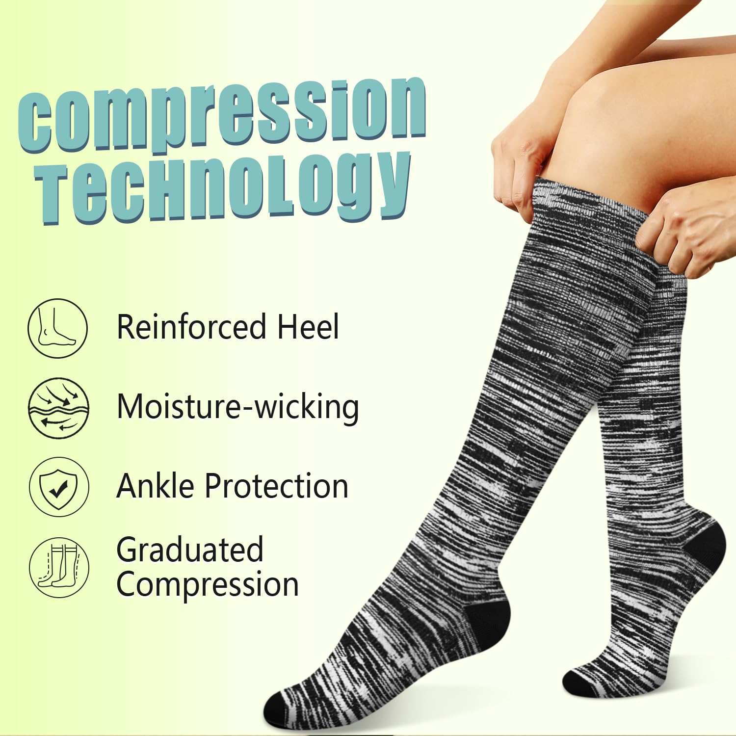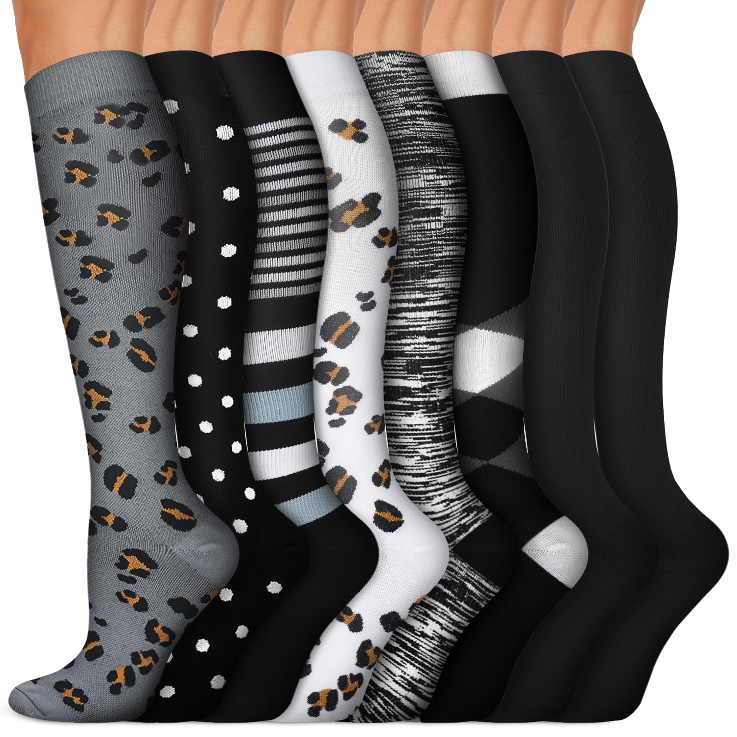 ✅ 8 PAIRS OF PREMIUM COMPRESSION SOCKS – Step into all-day comfort with our 8-pack of high-quality compression socks, designed for those who are always on the move. Featuring stylish color combinations, these socks are perfect for a full week of wear without the hassle of daily washing. Whether you're at work, traveling, or hitting the gym, these socks deliver exceptional support and value. They also make a practical and thoughtful gift for anyone who values comfort and health.
