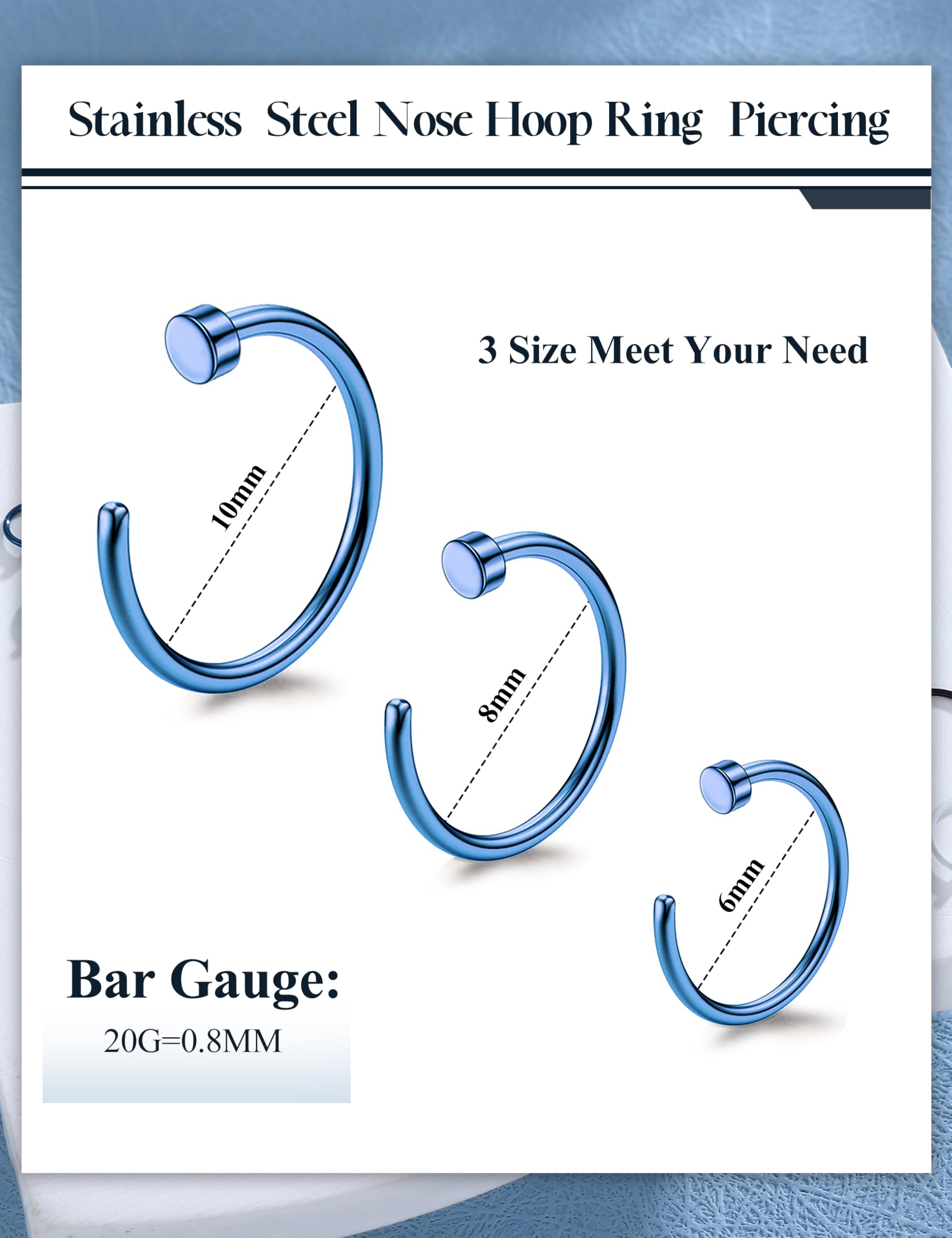 MATERIAL: Nose hoop earrings are made of 316L stainless steel, sturdy and durable, highly polished, smooth surface, long-lasting color, safe and comfortable for sensitive skin to wear