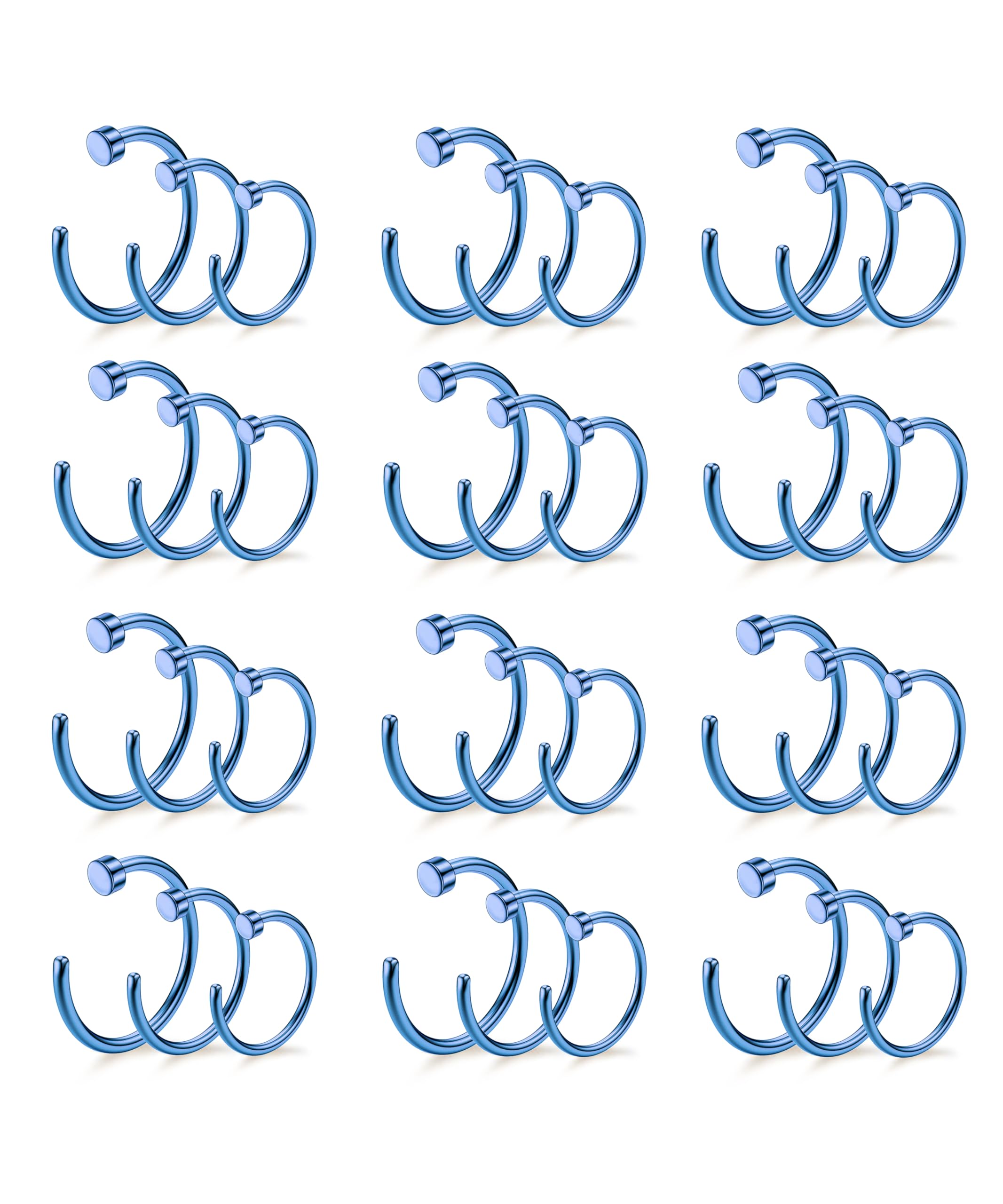 HOOP NOSE RINGS FOR WOMEN MEN: Hoop nose ring set comes with 36 pcs nose rings hoops in 12 different colors, affordable price, economical set. The most popular shape and style of hoop nose ring can match your dissimilar clothes and looks
