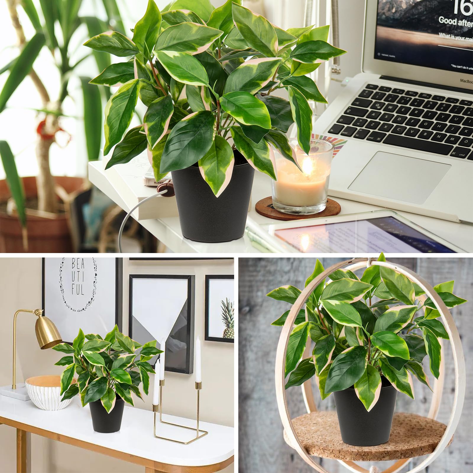 Realistic Look Fake Plants - This indoor plants artificial are designed to close to the real pothos plants, with realistic stem and lush green leaves, the venations on the surface of the pothos leaves are clearly visible, its pink and white variegation makes it looks more unique and charm, it would be more lifelike than other small faux plant