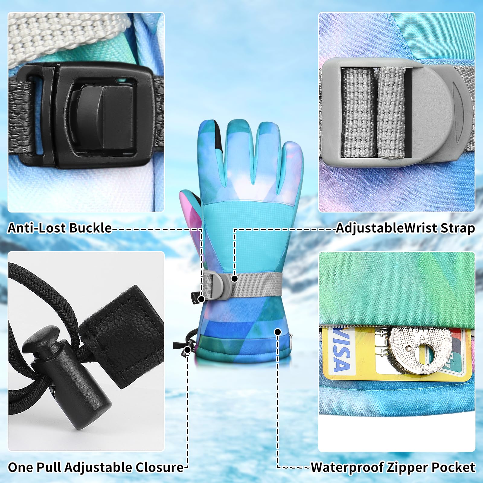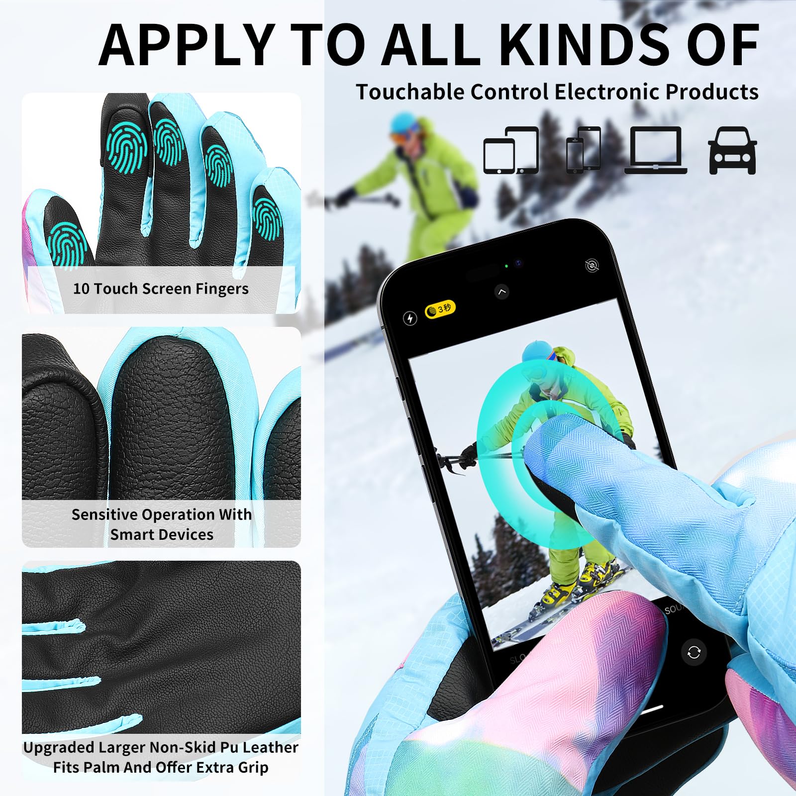 【Warm and Breathable】Double-layer thick warm fleece provides strong warmth for snow. This pair of snow gloves can keep hands warm in low temperature, which is very suitable for winter sports such as skiing, snowboarding, sledding, snowmobiling and snowball fights. Moreover, the breathable material allows the sweat from the hands to evaporate in time, which keeps the hands dry.