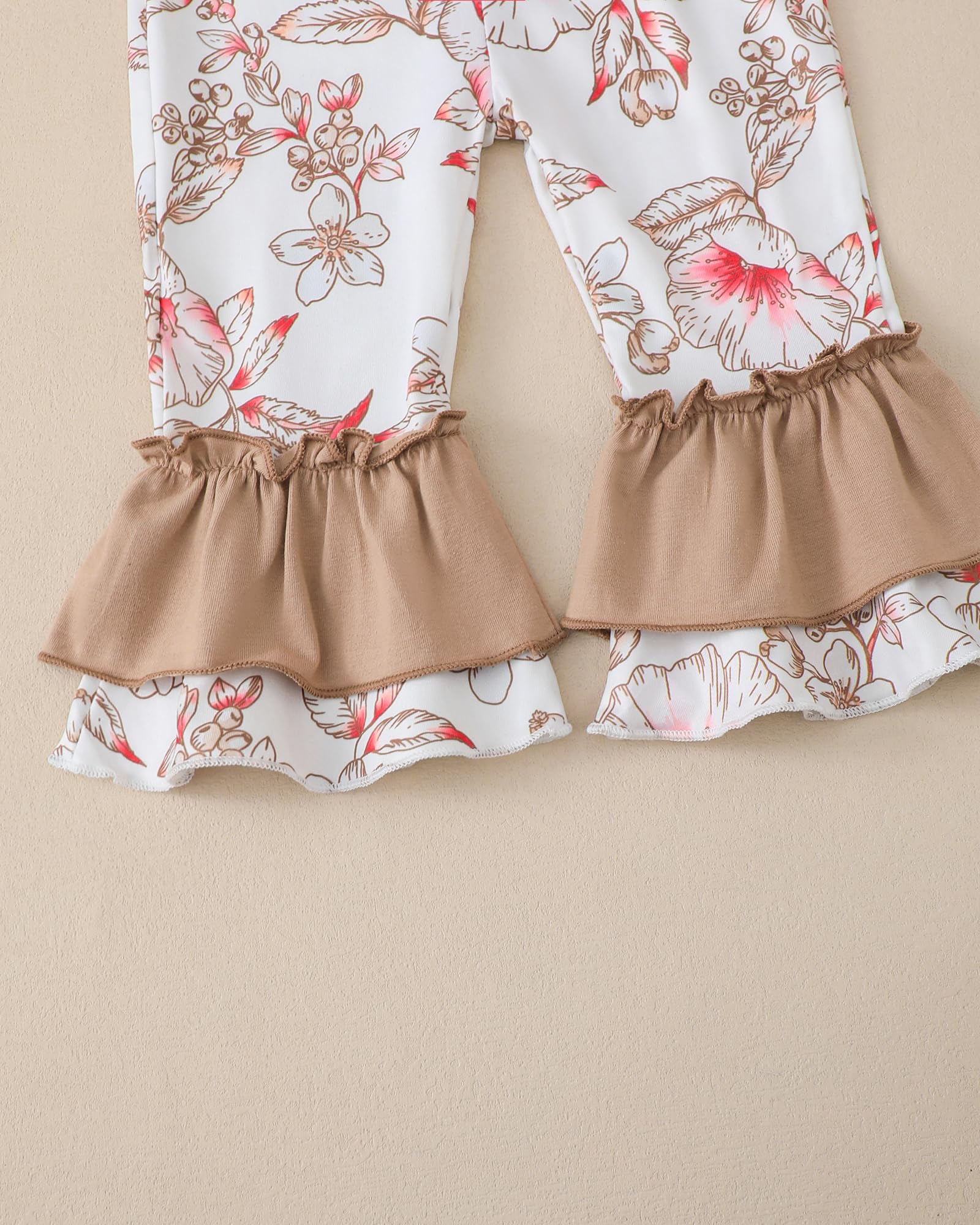 Design :Toddler long sleeve t shirt with cute floral print bell bottoms;irregular hem and flared leggings pants,comfort for walking,running and playing, fit for different body size,and easier to put on and off.