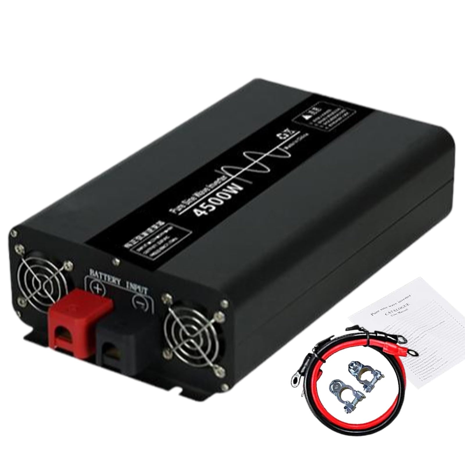 ▶▶Are you still worrying about the power outage? - With this multi-function inverter, you can use ordinary 110V 220V electric appliances in your car/boat/caravan or your distribution garden. Or DIY your own home solar wind power generation system! ▶▶Features: - Stable : Supply continuous pure sine wave output , as stable as main power - Silence : Less audible and electric noise - Save : Less power consumption , less waste - Safe : No damage to your devices ▶▶Specifications: - Name:Pure Sine Wave Power Inverter - Material: aluminum alloy - Output Waveform: pure sine wave - Input Voltage: 12V/24V/48V DC - Output Voltage: 110V/220V AC - Peak Power: 4500W/7000W/10000W (Optional) - Rated Power: 2300W/3300W/5000W (Optional) - Weight: 3.3kg(4500W) /5.25kg(7000W) /6.4kg(10000W) - Output Socket: 2 - LCD Screen: input voltage, output voltage display - Protection: short circuit, undervoltage, overvoltage, overload, high temperature, overcurrent ▶▶ Packing List: - Pure Sine Wave Inverter x 1 - Pure Copper Cables x 1 ▶▶Remarks: 1. Before connecting the inverter, make sure that the inverter switch is off. 2. 12V inverters are only suitable for 12V batteries. 24V inverters are only suitable for 24V batteries. 3. Do not expose the inverter to direct sunlight and store it in a cool, dry environment. 4. Do not use the inverter with products that consume more power than the inverter can supply, as this may damage the inverter and the product. ▶▶Customer service: - As an honest international seller, customer satisfaction is our top priority. If you have any questions about the product, please send us an email in time and we will answer your questions as soon as possible.