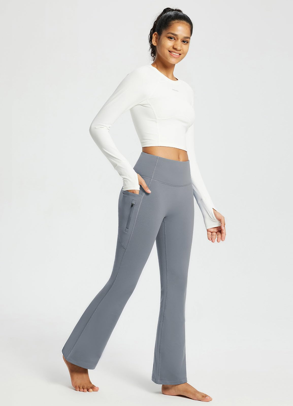 High Waist & Bootcut Design: These yoga pants feature a wide and high-rise waistband, offering gentle compression. Slightly flared pants shape visually slims the silhouette and fits any body type.