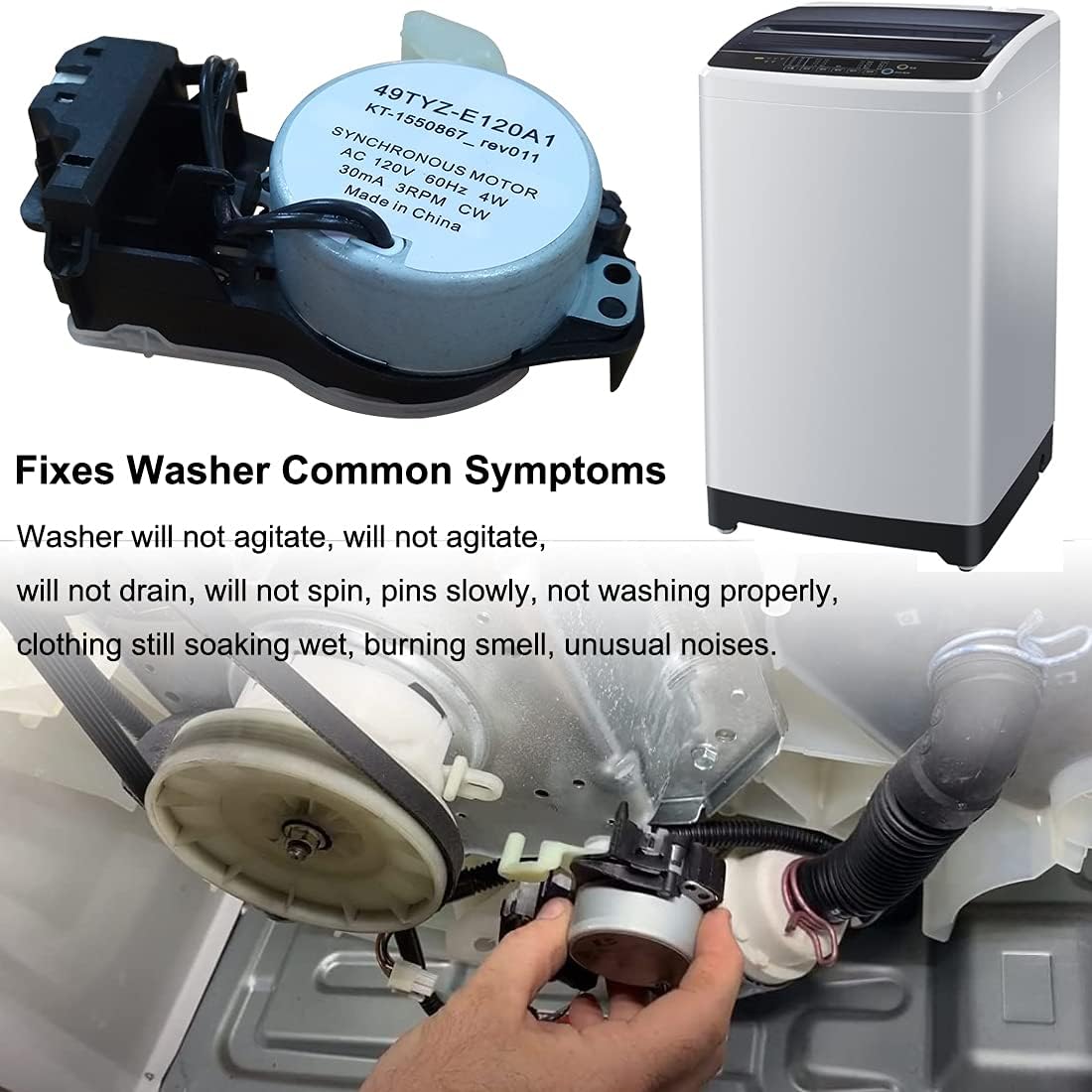 【Fix Common Issues】If your washing machine exhibits symptoms such as failure to spin, failure to agitate, or difficulty starting, consider replacing it with the W10913953 washer shift actuator. This 49TYZ-E120A1 actuator effectively resolves these issues and improves washing performance, making it an ideal choice for repairing your washing machine.