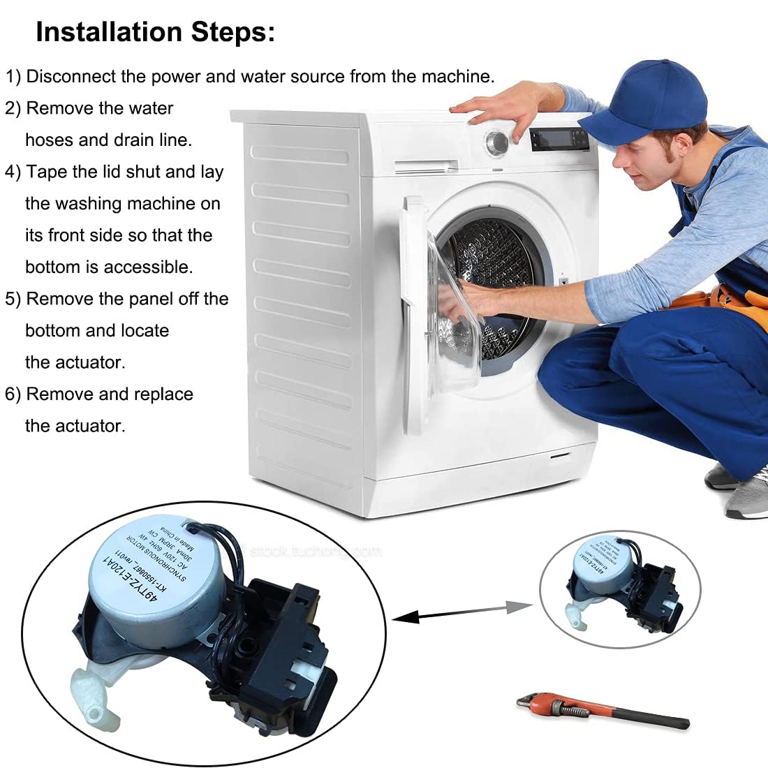 【Easy Installation】Installing the W10913953 washer shift actuator is straightforward. Simply remove the water hose, detach the securing cover and base plate, and locate the 49TYZ-E120A1 washer shift actuator—installation can be completed within an hour. Be sure to disconnect power and water supply before installation and wear work gloves to ensure safety.