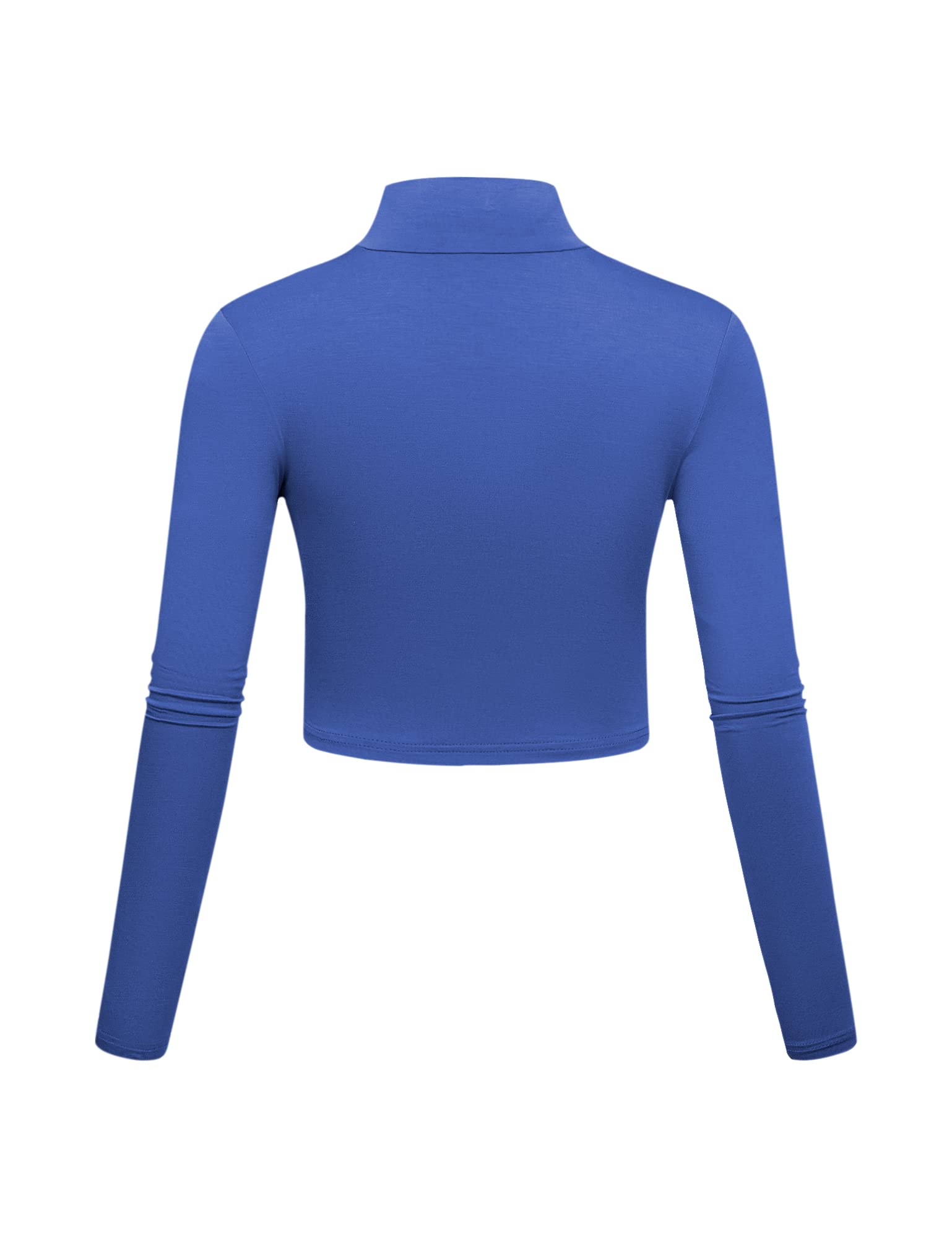 Style: Design with 2.4in mock turtleneck collar, the neck can easily stay up but not choking. Slim fit crop top hugs your curves perfectly. Long enough and wonβt shows your sports bra when workout.