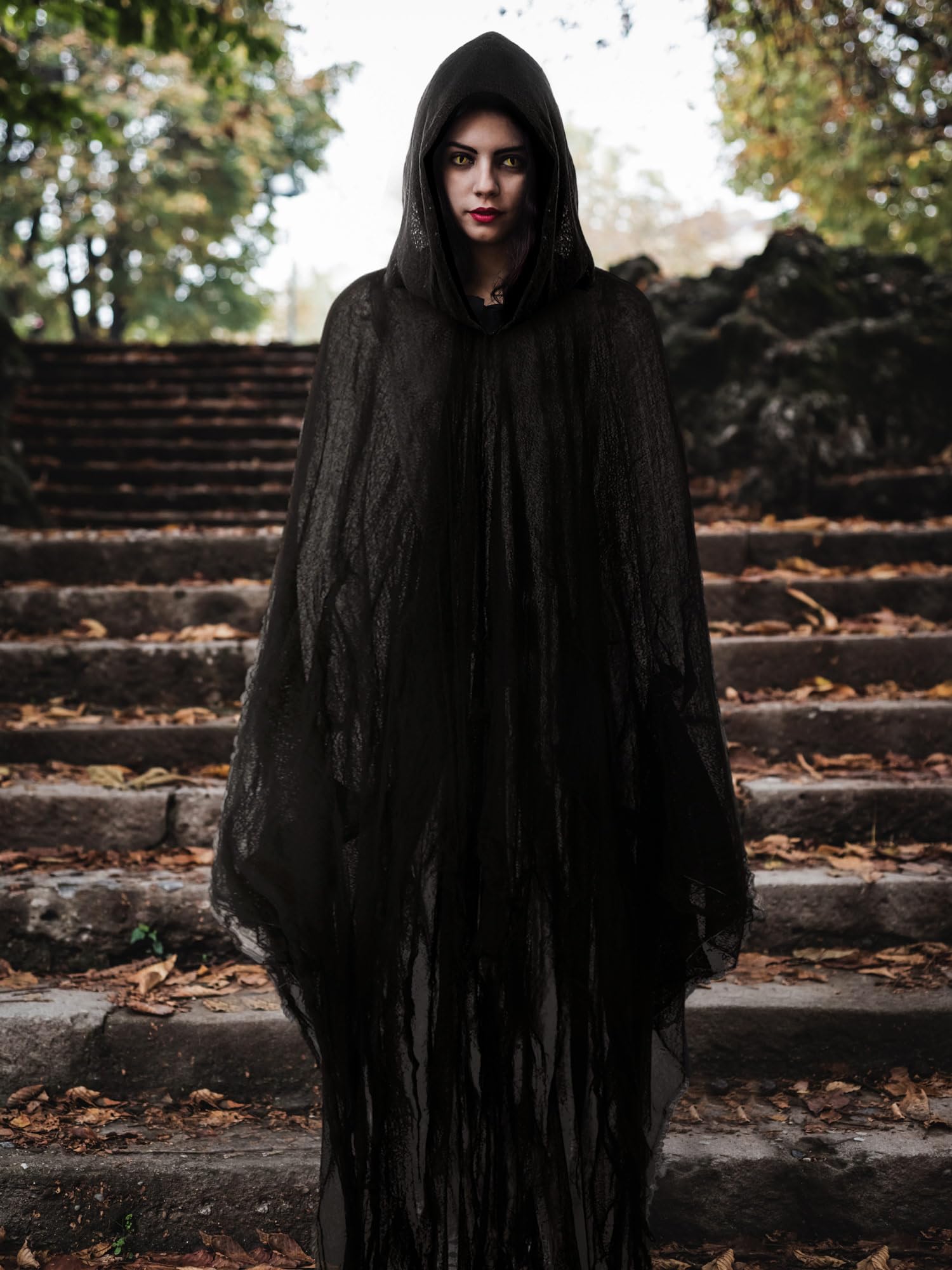 Featuring the sense of mystery: designed with fabric and hole mesh, our cloak with hood delivers a sense of horror and mystery; It adds a layer of realism to your character portrayal, allowing you to truly embody the role you're playing