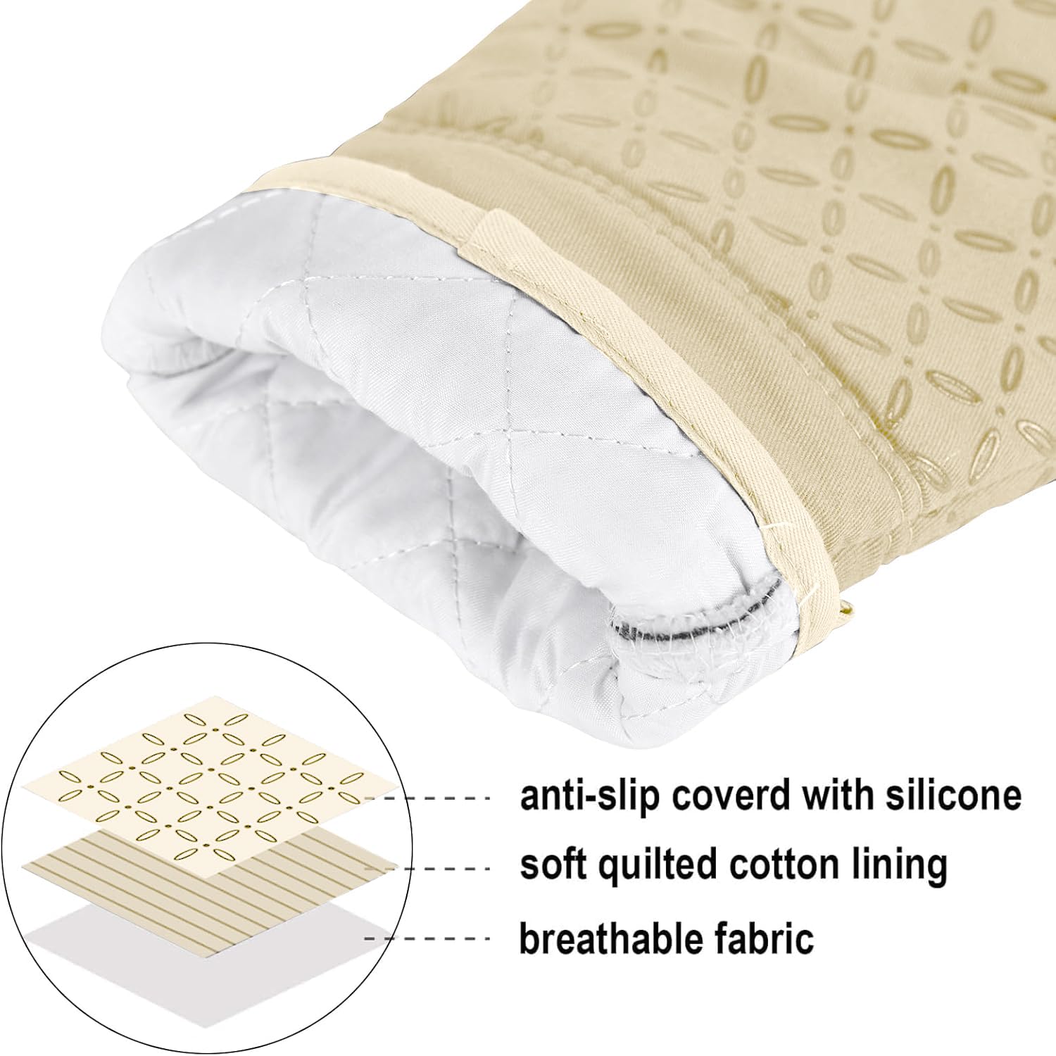 500°F HEAT RESISTANT &NON-SLIP: This oven mitts heat resistant 500 degrees because of the durable construction so it can effectively keep you protected from burning while you enjoy cooking and grilling. Enhanced with anti-slip silicone design to provide a more robust, non-slip grip that can be held securely when handling the kitchen utensils