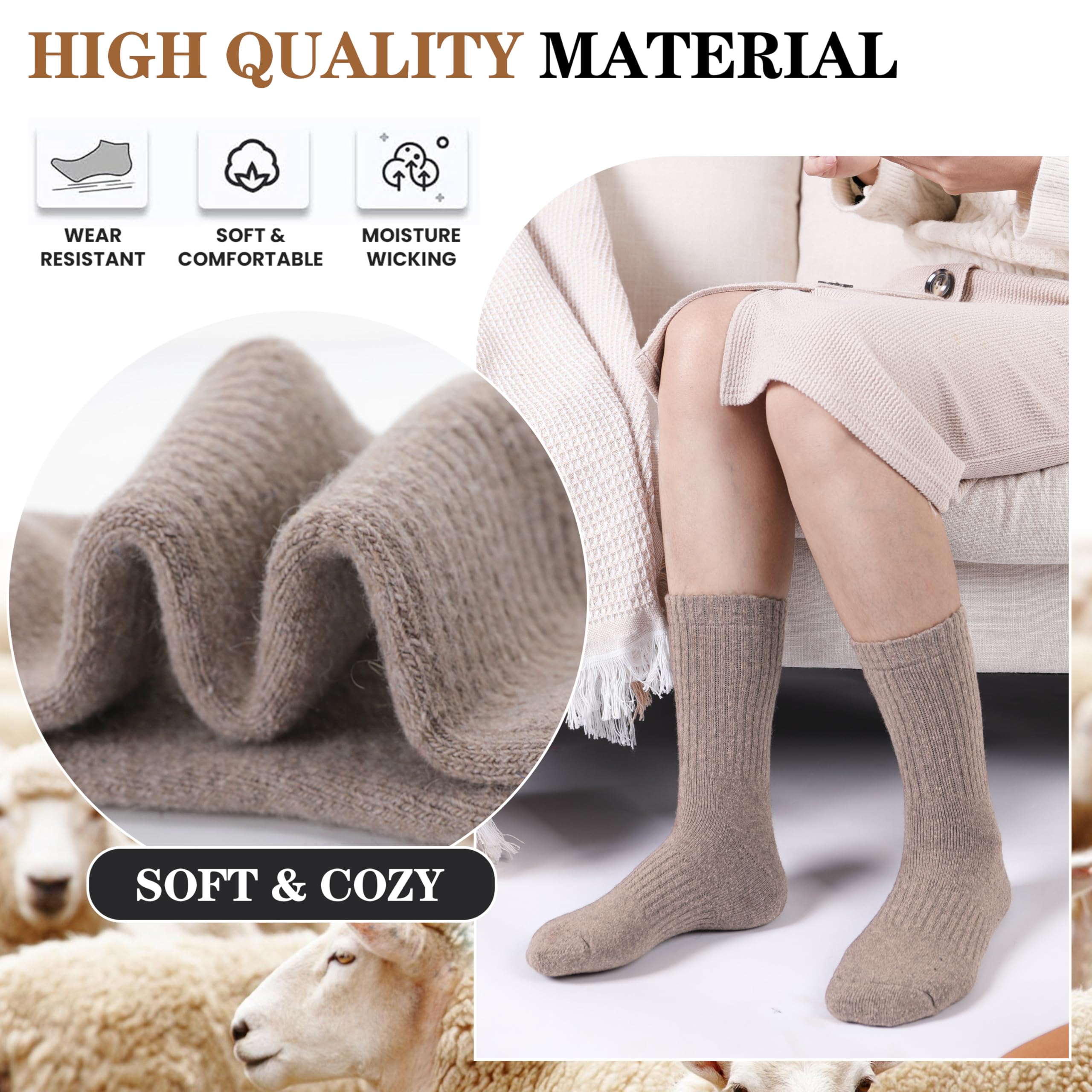 WARM & COZY : The materials of this stylish womens winter wool socks is very soft and comfortable, fuzzy inner design will keep your feet warm, the breathable and soft fabric will also keep your feet comfortable all the day.