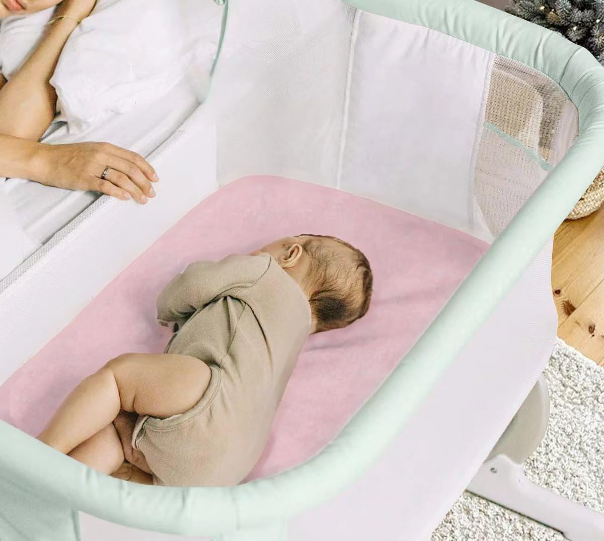 Our bassinet fitted sheets are made of 100% premium polyester for naturally stretchy. With an elastic band around the entire edge for a snug, our bassinet sheets are compatible with most rectangular bedside bassinet sleeper and crib mattress with different size. We do really hope your baby love the delicate touch and enjoy sleeping during the day and night!