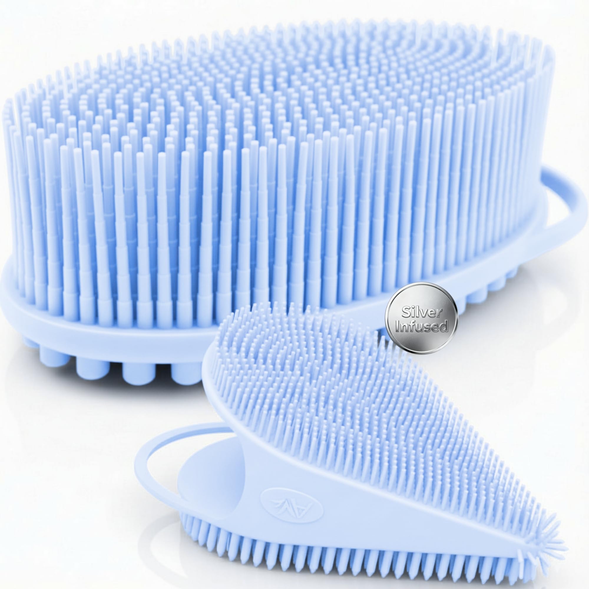 ★ SILVER BODY SCRUBBER — Full-size dual-sided scrubber with silver-ion technology throughout. Massage nodules on one side for relaxation. Soft bristles on the other for thorough cleansing. Same quality as our standalone Silver Edition.