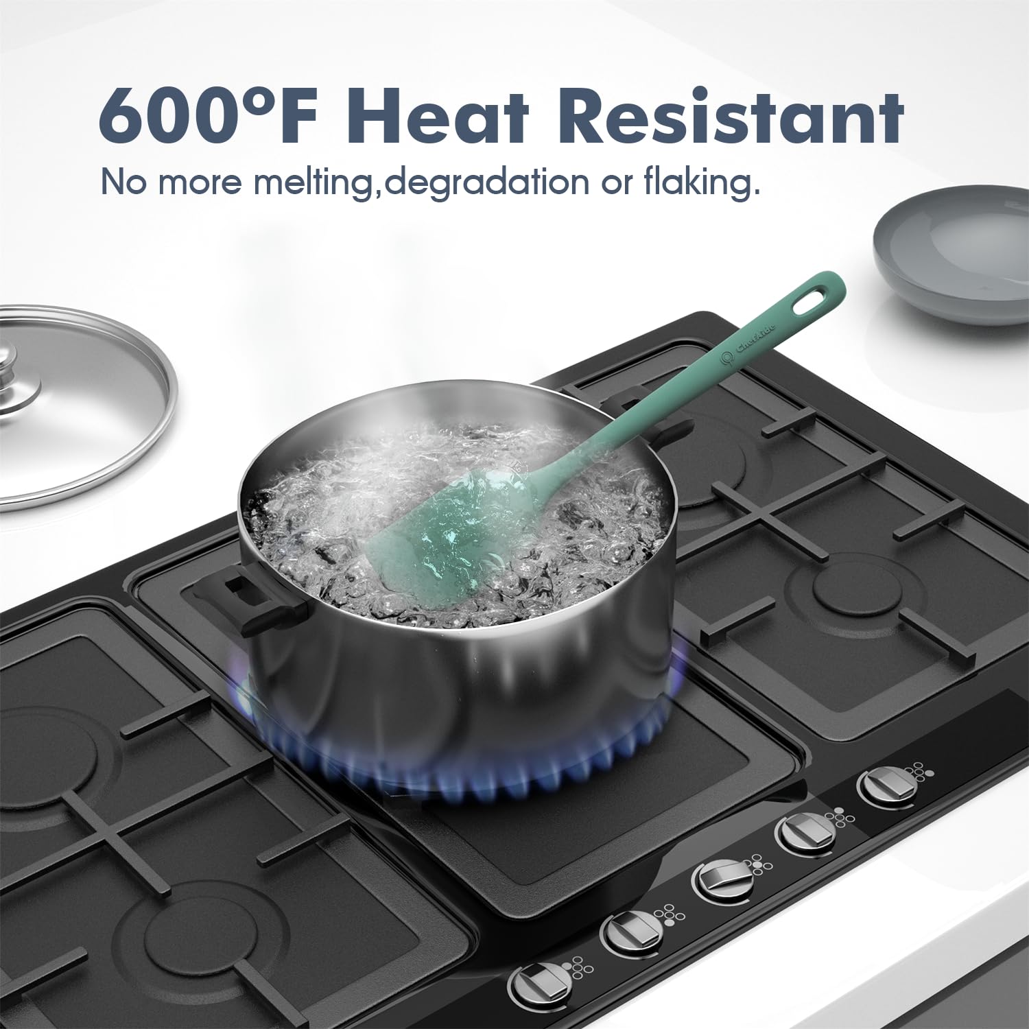 Premium 100% Food Grade Silicone: The silicone spatula set is made of healthy and friendly material, resistant to high temperatures. No more melting, cracking and worrying