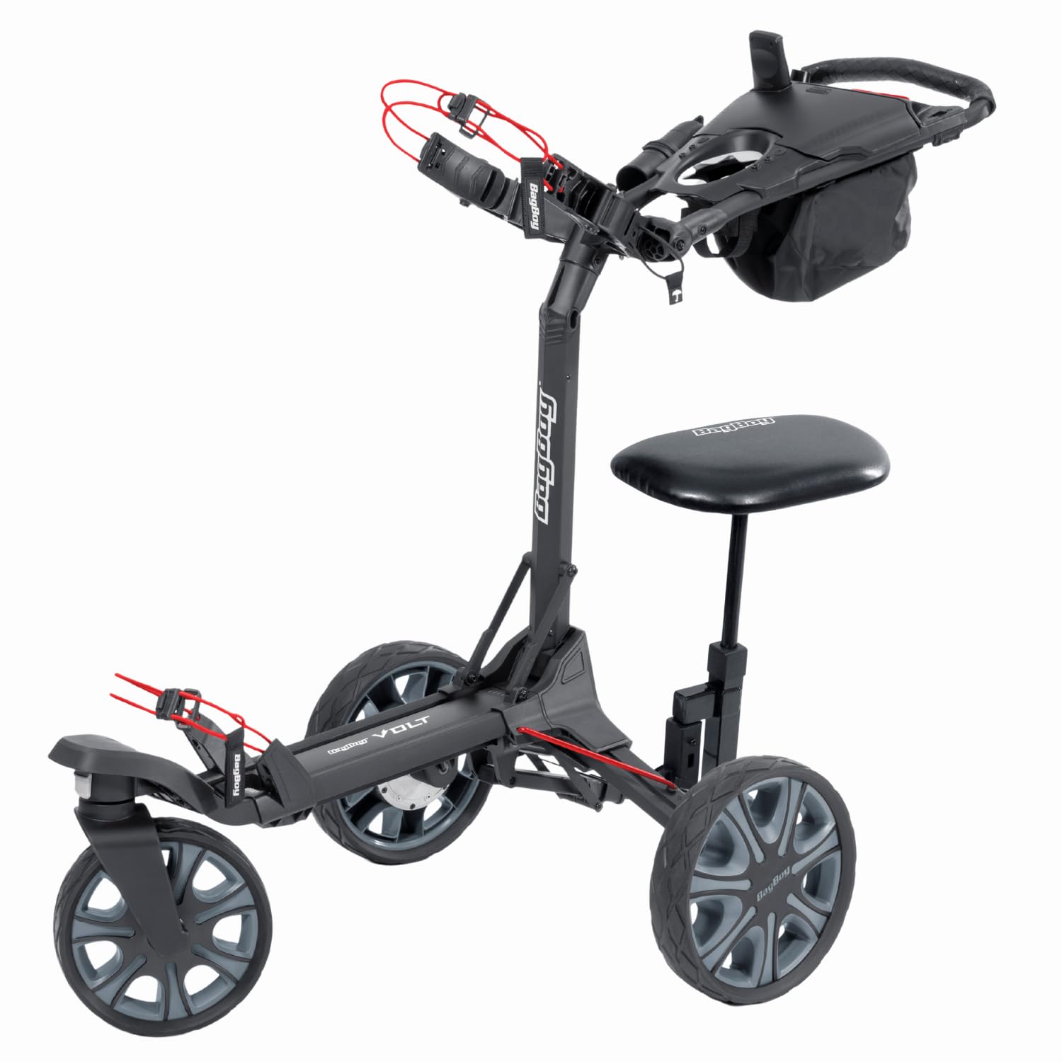 LONG-LASTING LITHIUM BATTERY: The Volt is operated by a powerful lithium battery that charges in just four hours and keeps the cart running for up to 36 holes; with the option to disengage the battery to seamlessly perform as a manual push cart