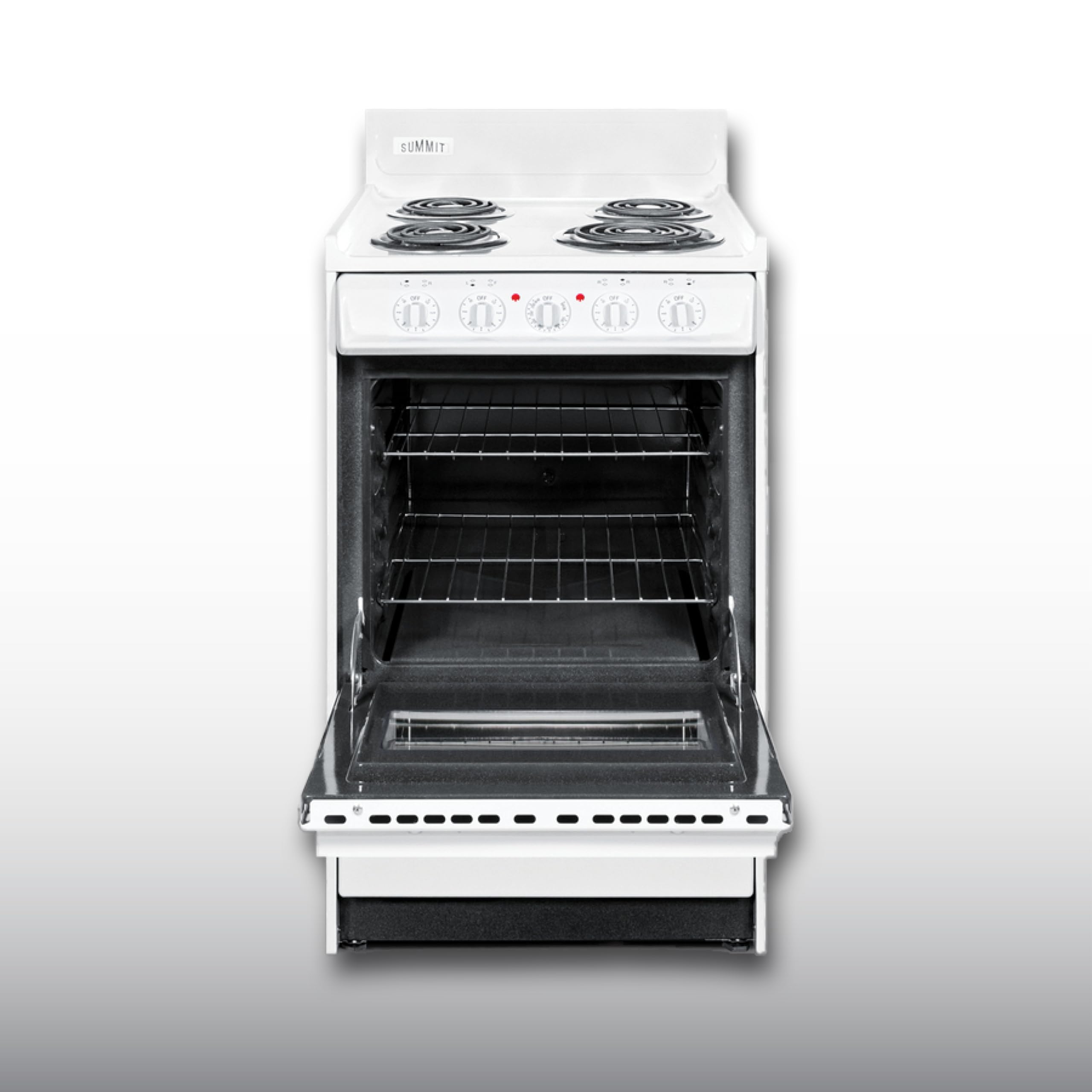 Made for cooking your favorite meals: This unit features one 8" 950W and three 6" 650W coil elements for a variety of needs. The oven offers a window and includes two adjustable oven racks and a waist-high broiler, located inside the oven.