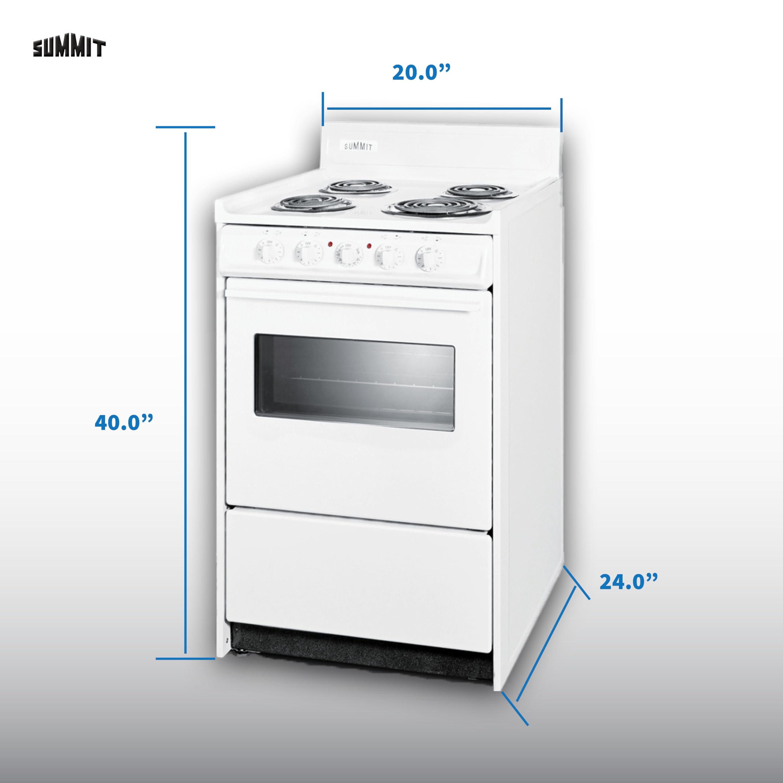 The perfect electric range for your kitchen: At just 20" wide, with a generous 2.46 cu.ft oven interior that can accommodate large trays, this range is perfect for apartments and smaller kitchens. The lower drop-down storage compartment is perfect for pots and pans.