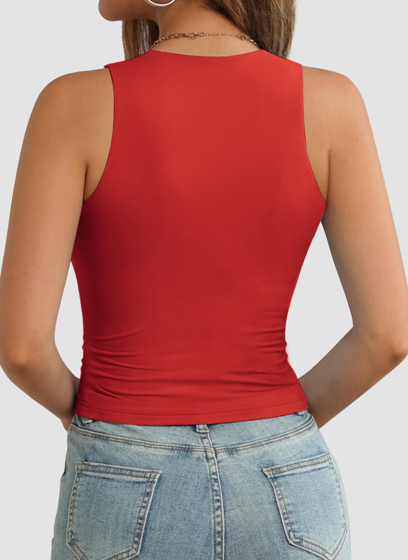 Design: This racer back tank tops with high neck and double line design,casual and fashion for women and cute for teen girls,tight slim fit,basic type,solid,racer back,cropped length