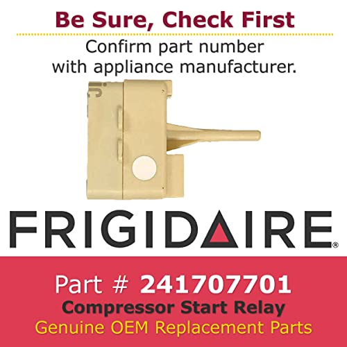 Product Description The high quality Frigidaire Compressor Start Relay (241707701 ) attaches to the compressor and helps start the compressor motor. The Compressor Start Relay for Crosley, Electrolux, Frigidaire, Kenmore, and White Westinghouse Refrigerators & Freezers and replaces 7241707701. Please be aware that it is recommended to use saftey equipment and to disconnect the appliance from all utilities prior to any service or repair. Please refer to your owners manual to confirm part numbers and for instructions as some repairs require a trained service professional to complete. From the Manufacturer This is a genuine replacement part. The model number and name for the following item is: Start Device 241707701 Frigidaire compressor sealed system
