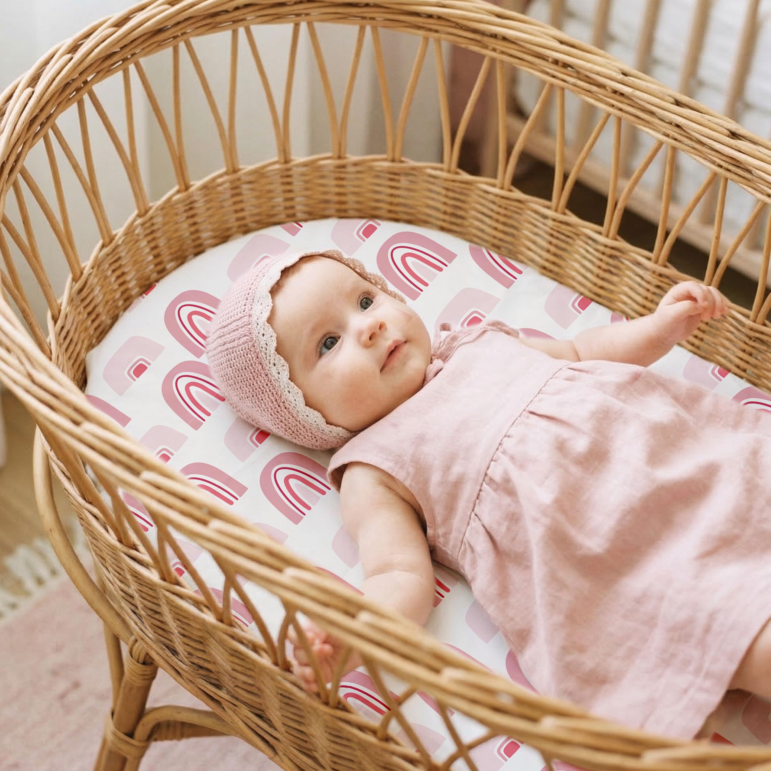 SUPER SOFT FABRIC: Our baby bedding bassinet sheets are made of soft and breathable fabric that best fits the standard bassinet crib. The elastic band surrounds the mattress, so mothers will not worry that it will slip away, creating a comfortable and stable sleeping space for the baby. Rest assured, every product meets the OEKO-TEX Standard 100 and is safe for babies