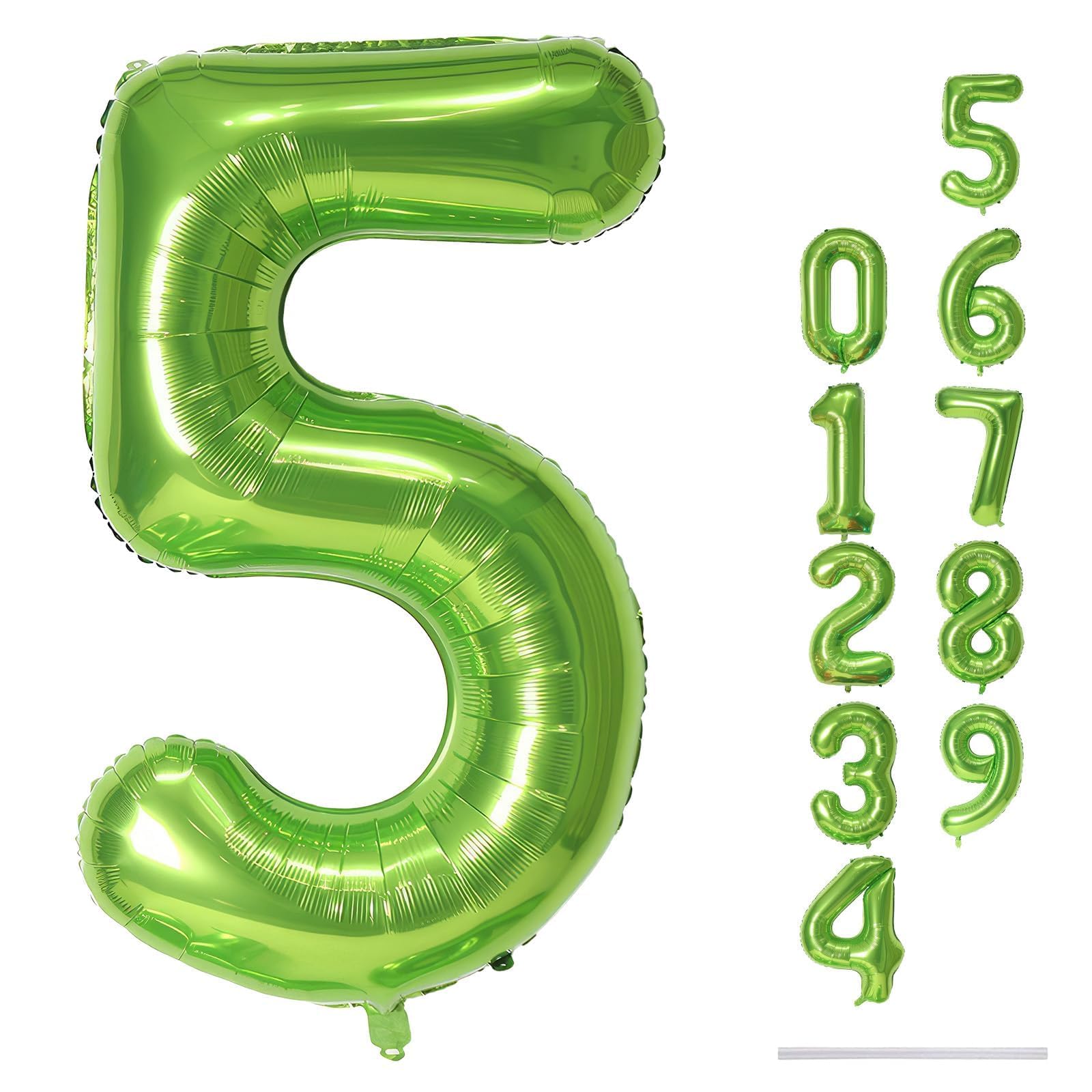 🎉 Green Number 5 Balloon 🎉 - You will get 1pc 40 inch mylar foil number 5 balloon and 1pc straw. Perfect for 5th 15th 25th 50th 45th birthday or anniversary party decorations supplies.