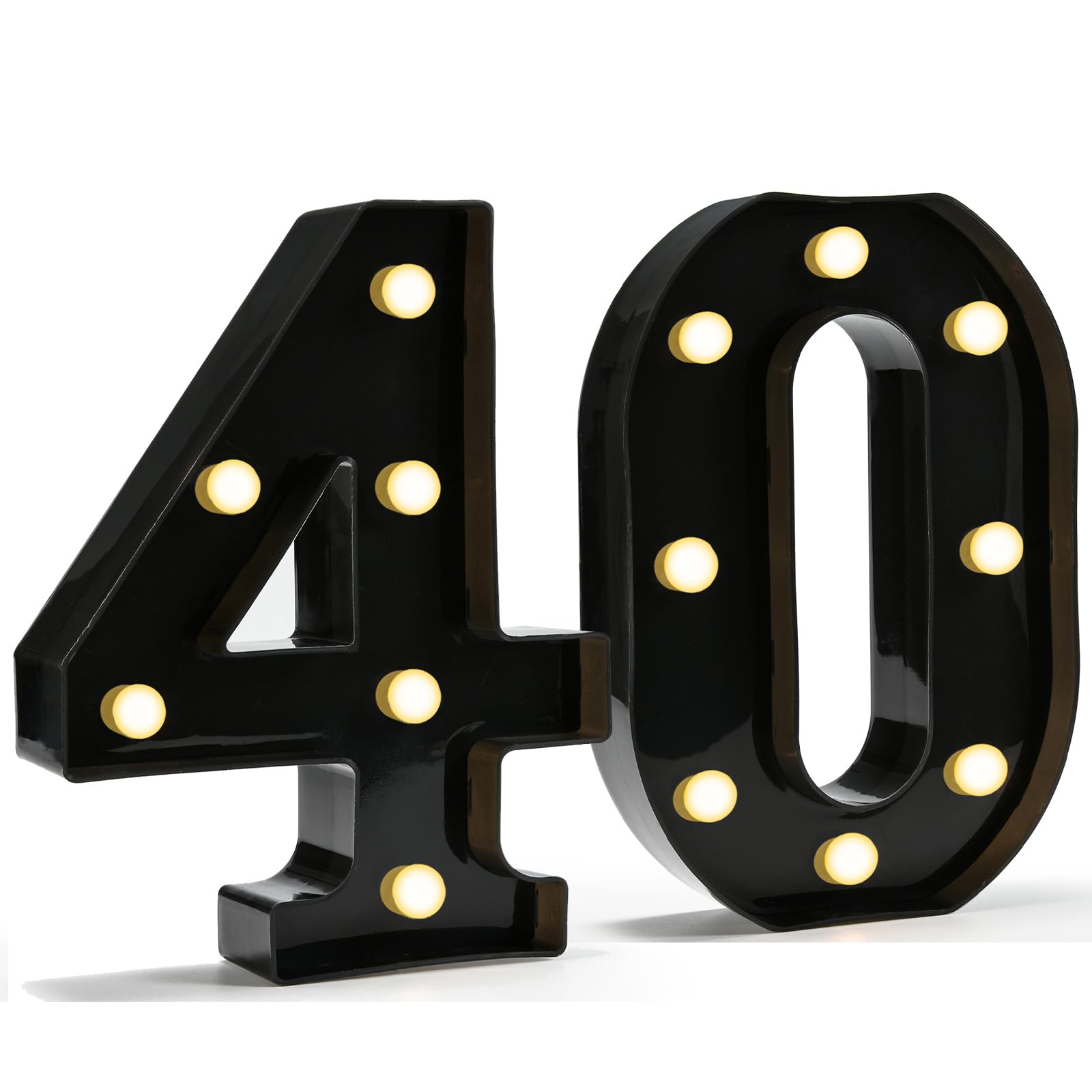 Combination of Two Numbers: You'll receive two lovely light up numbers, respectively in the numbers [4] and [0]. Their glossy Black color and smooth appearance will make you love these sweet number lights