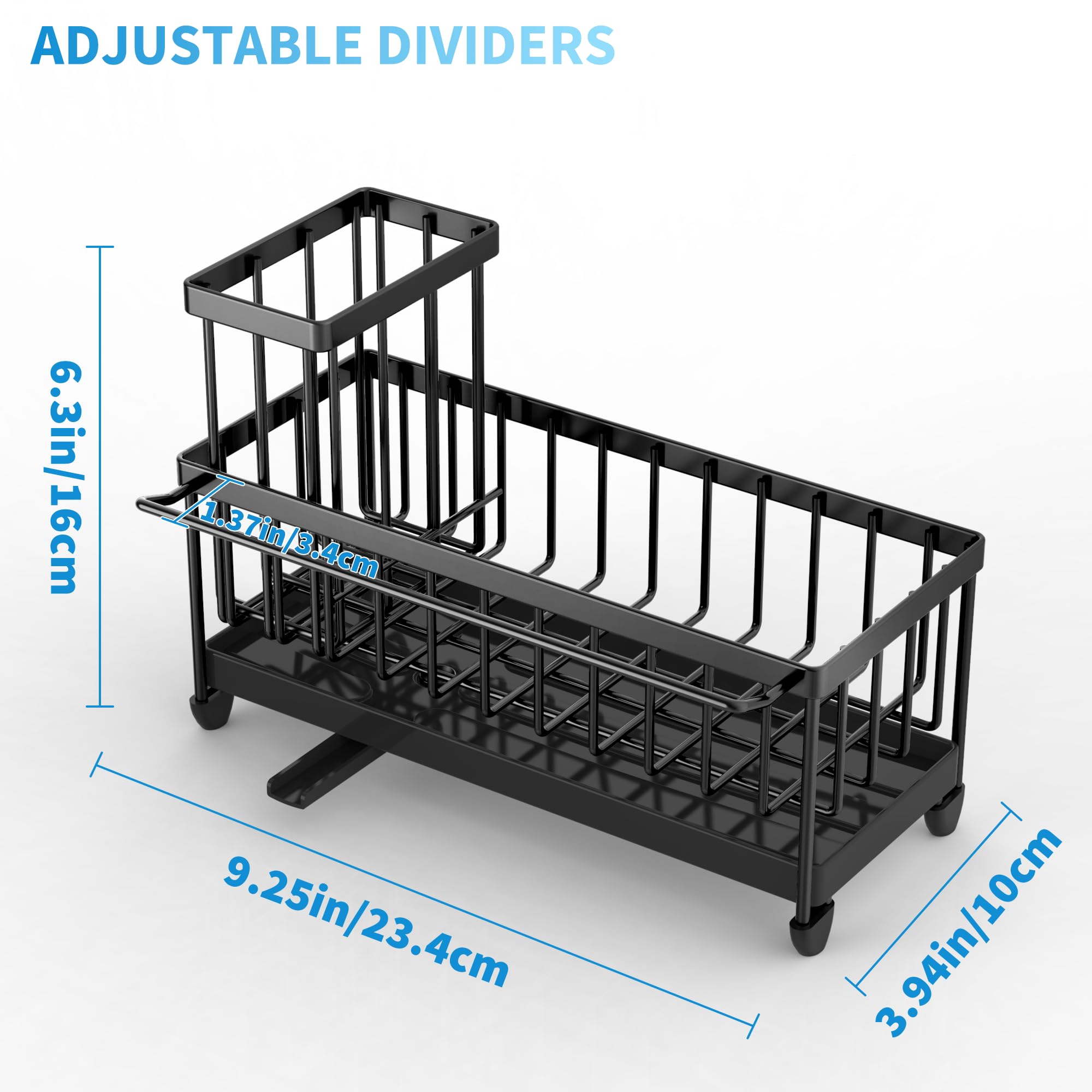 【REASONABLE DIVIDER DESIGN】 The sponge holder for kitchen sink ergonomic divider design allows it to have 3 separate storage spaces, Different items are placed in different areas. Make the most of every inch of space and make your kitchen look cleaner.
