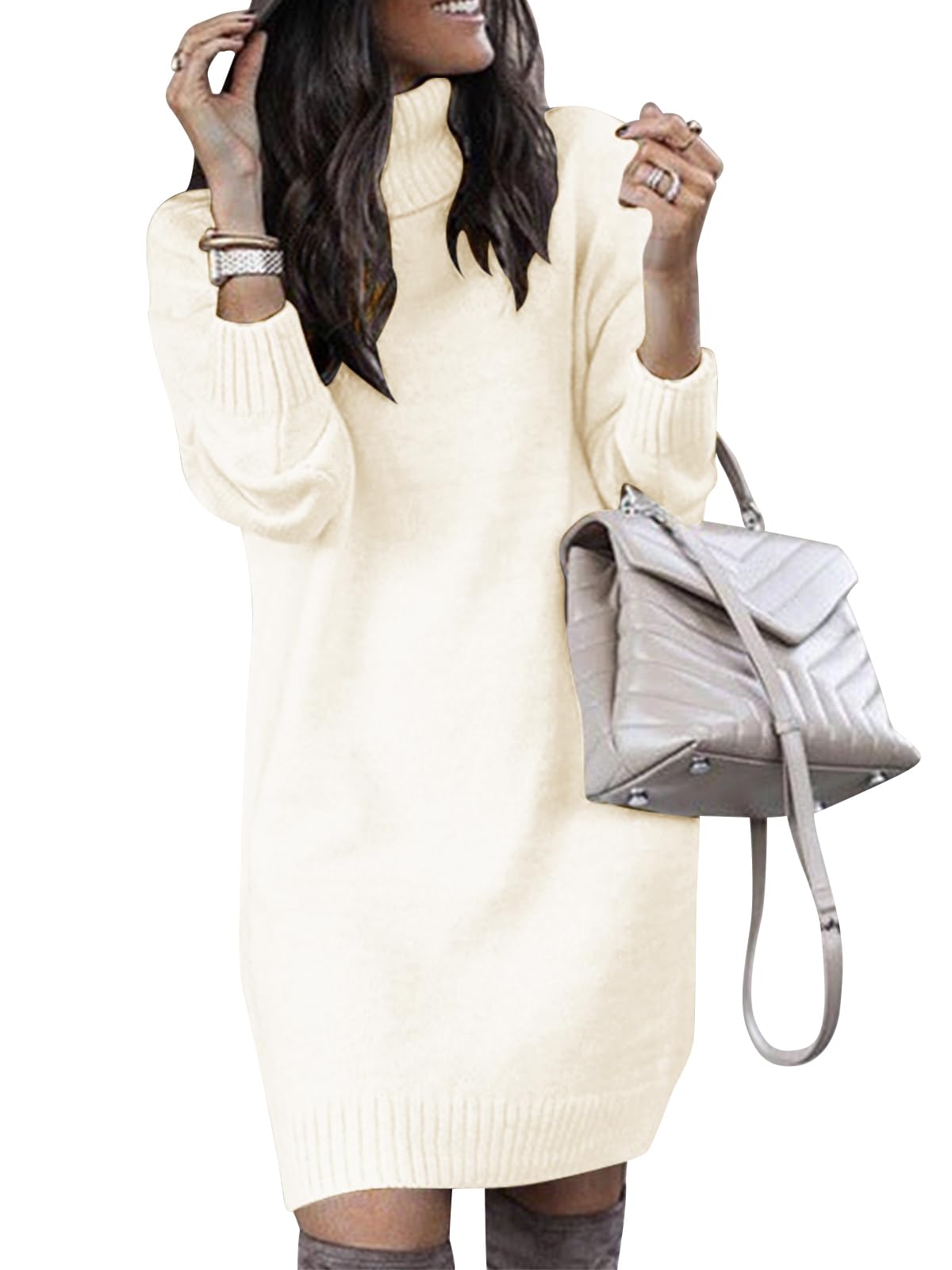 Style: women's turtleneck long sleeve sweater dress / women's cable knit sweater dress / slim fashion sweater / half body sweater dress / fall sweater dress / knitted sweater dress / feel super soft / solid color / casual style