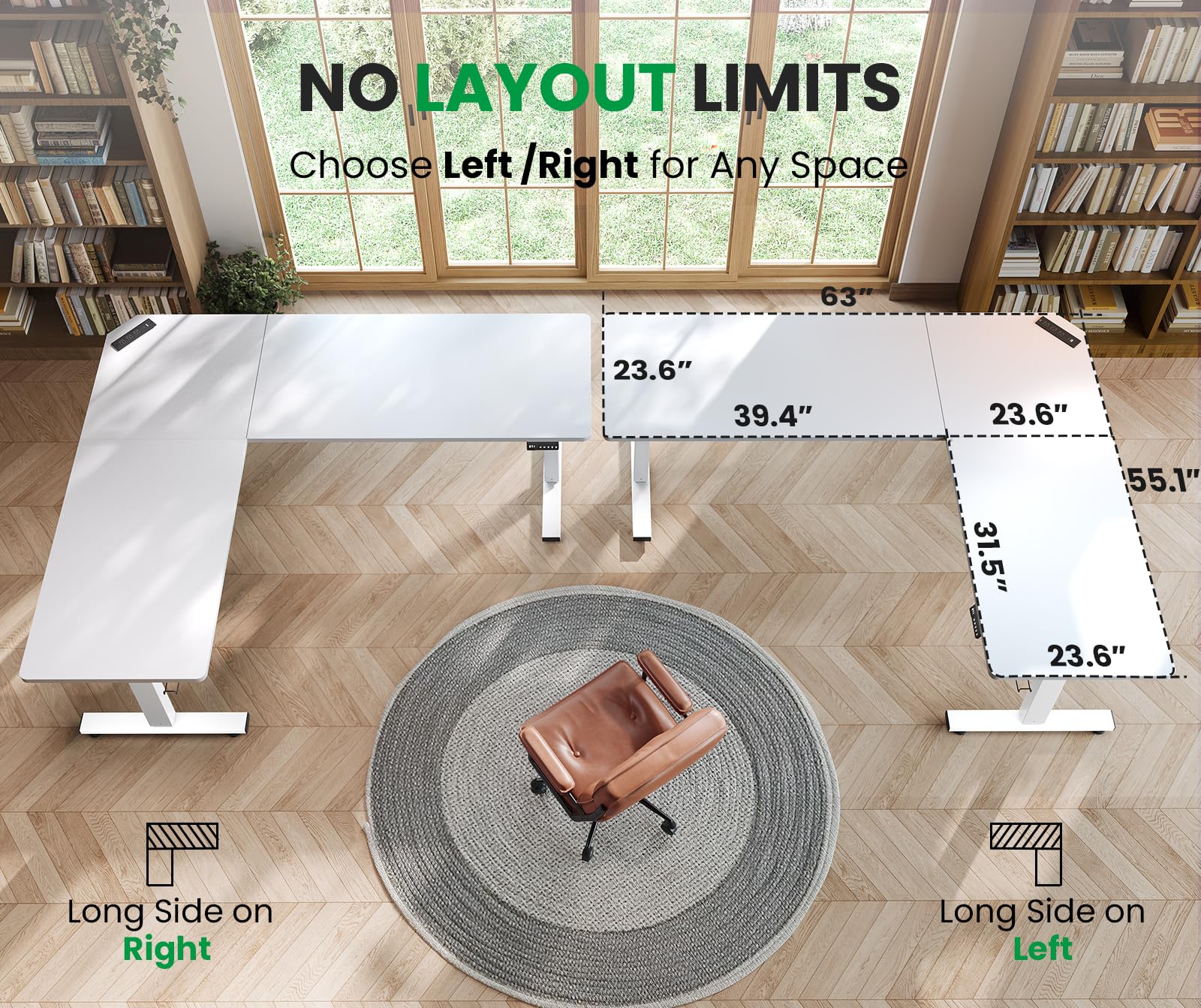 【No Layout Limits】Effortlessly adapt to any room layout with your unique reversible installation feature. Choose between left/right long-side configurations to maximize space utilization, ensuring seamless integration into any home office setup. Tailored to your unique needs, SIAGO L-shaped desk offers ultimate flexibility while delivering a premium workspace solution.