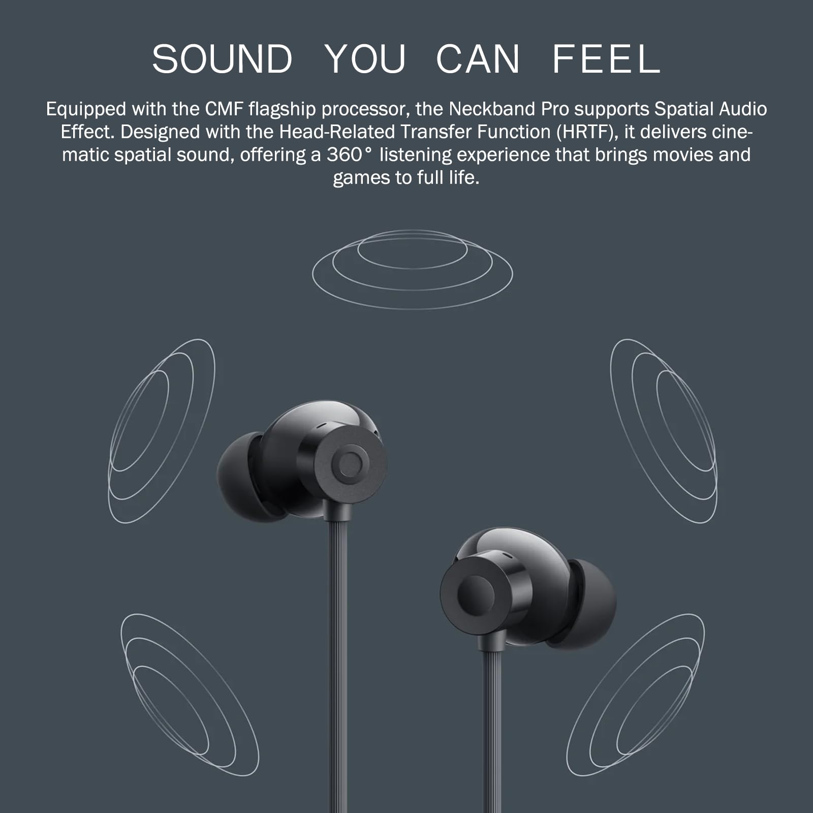 Equipped with the CMF flagship processor, the Neckband Pro supports Spatial Audio Effect. Designed with the Head-Related Transfer Function (HRTF), it delivers cinematic spatial sound, offering a 360° listening experience that brings movies and games to full life.