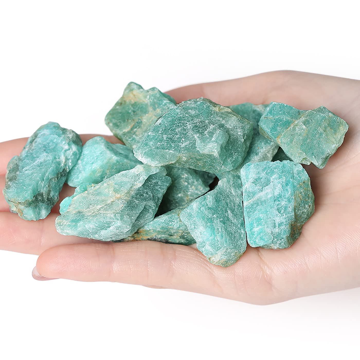 [ Basic Information ] Specification attributes : 0.88 lbs Bulk Amazonite Raw Crystals. (approximately)Size : 0.8-1.2"; Weight : 0.88lbs/set (400 g/set). It is a stunning addition to any home /small garden/collection cabinet or jewelry box. It is suitable as a gift for crystal lovers, crystal beginners and craft lovers.