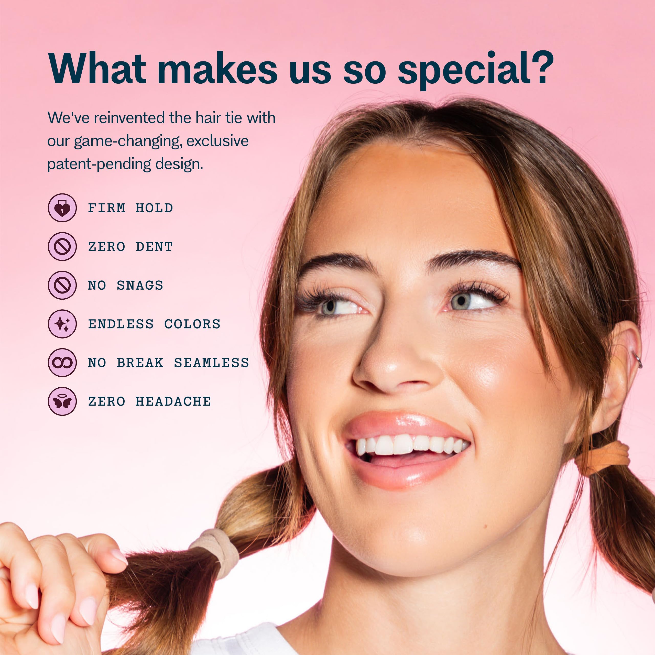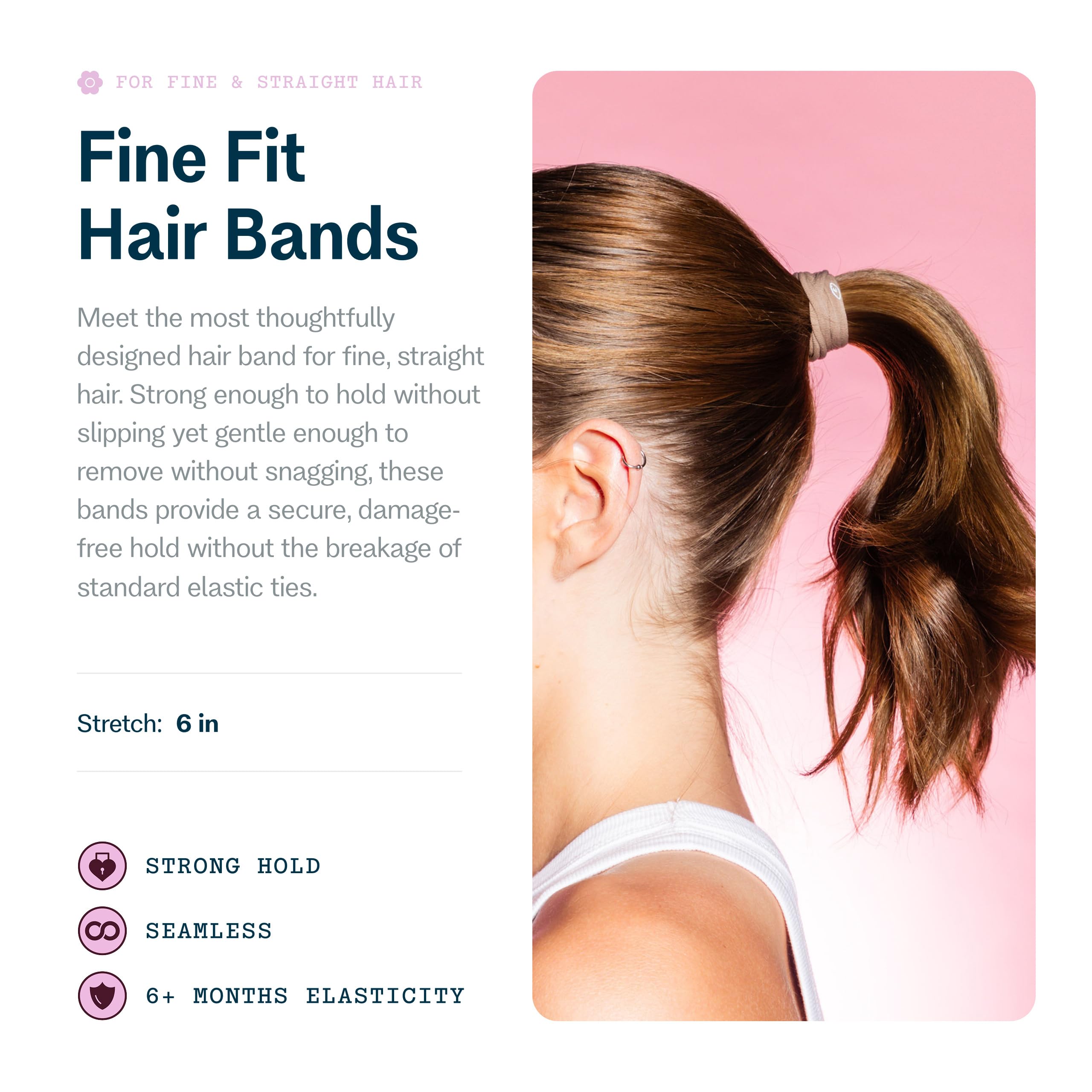 Introducing the perfect solution for fine, brittle, or bleached hair with Gimme Beauty Fine Hair Elastic Bands. These innovative hair ties feature a patent-pending design specifically engineered to provide a gentle yet secure hold while helping protect your delicate strands throughout the day.These nylon and spandex hair bands are thoughtfully crafted with seamless construction to help prevent common styling discomforts like headaches and hair dents. The specialized stretch-to-fit technology works to maintain a comfortable grip while being gentle enough as an everyday-use hair tie, making them ideal for creating lasting hairstyles without compromising hair health.Each elastic in this pack features a unique blend of nylon, silk, and spandex materials that helps provide snag-free styling versatility. Whether you're securing a ponytail, finishing off a braid, or creating everyday hairstyles, these hair ties offer the perfect combination of flexibility and hold for fine hair types.At Gimme Beauty, we believe hair solutions aren't one size fits all. We understand that each person's hair journey is unique, which is why we've designed these hair ties to work for all hair types, helping you feel confident and unstoppable in your daily life.We celebrate the sisterhood that grows from our shared experiences with hair. While some brands focus on exclusivity, we believe in creating accessible, inclusive products that work for everyone. Our mission goes beyond hair accessories—we're here to amplify your confidence because we know that confident women are unstoppable.