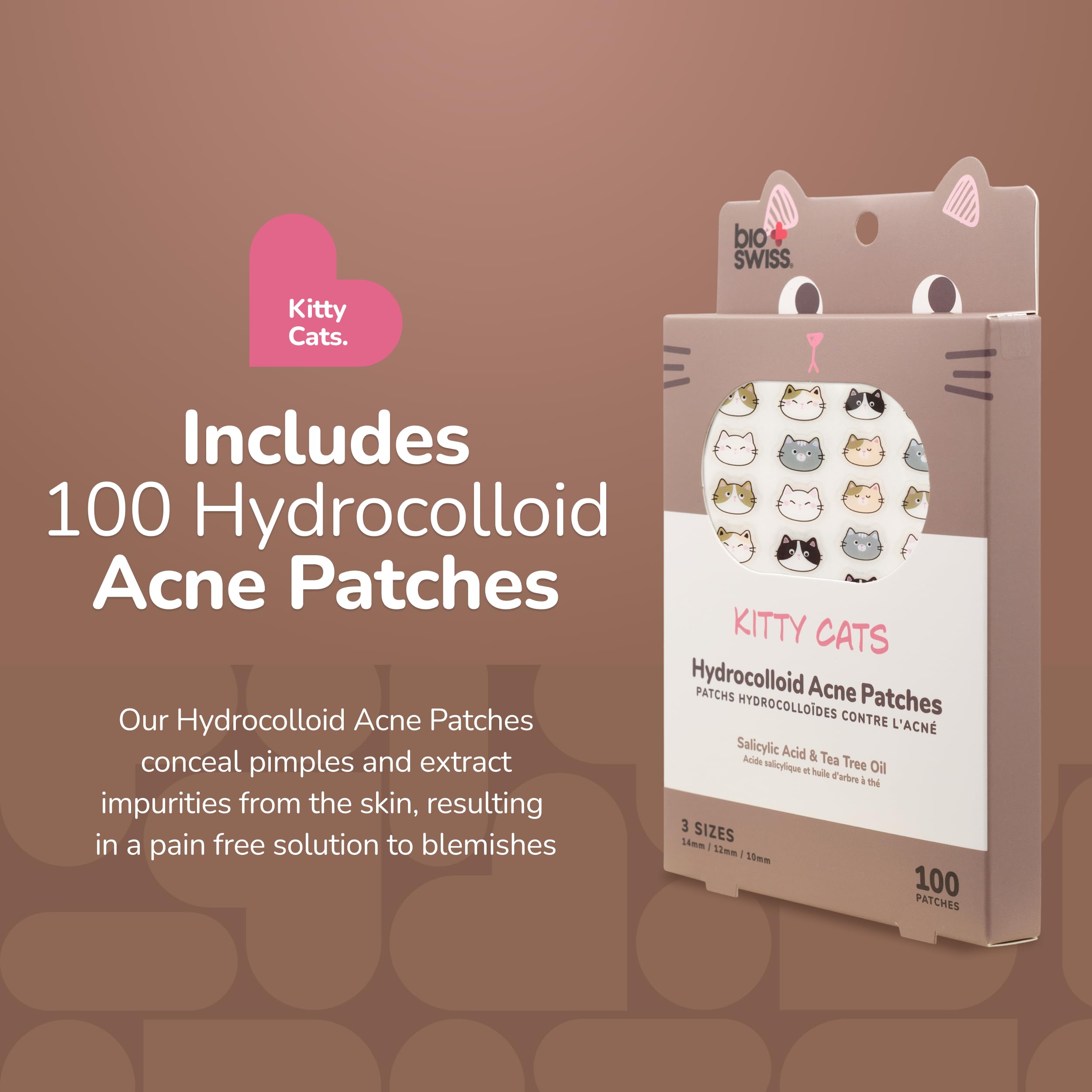 KITTY CATS ACNE PATCHES: Tackle zits and blemishes effectively and achieve clear and smooth skin with our Kitty Cats Acne Patches. Our patches for pimples come in 6 funny and cute assorted styles