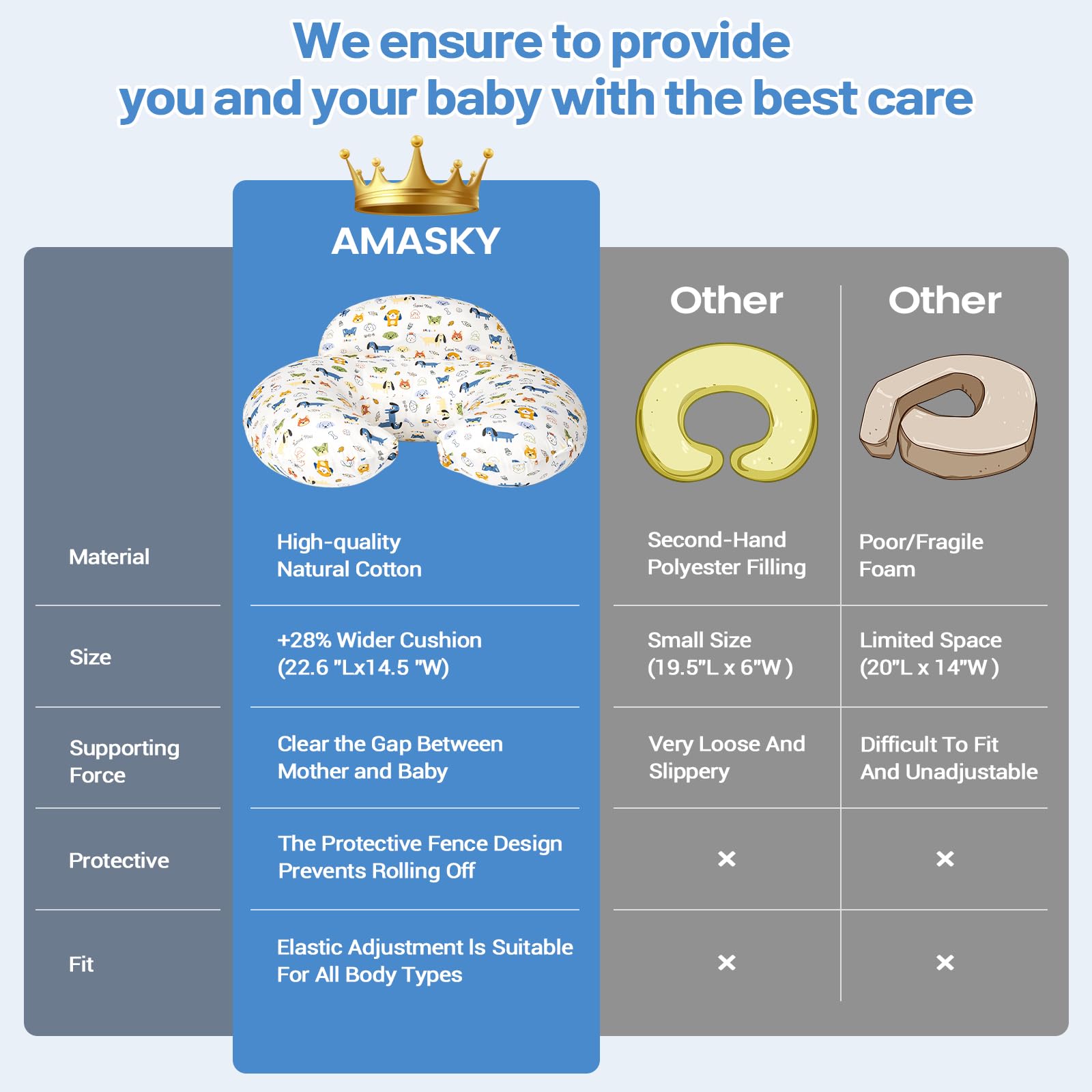 Nursery Essential: AMASKY Nursing Pillow is a must-have for registration and the most suitable gift for any baby shower. Tips: Since the packaged pillow is shipped vacuum, please pat the pillow and let it expand for at least 48 hours before use to make it fluffy enough