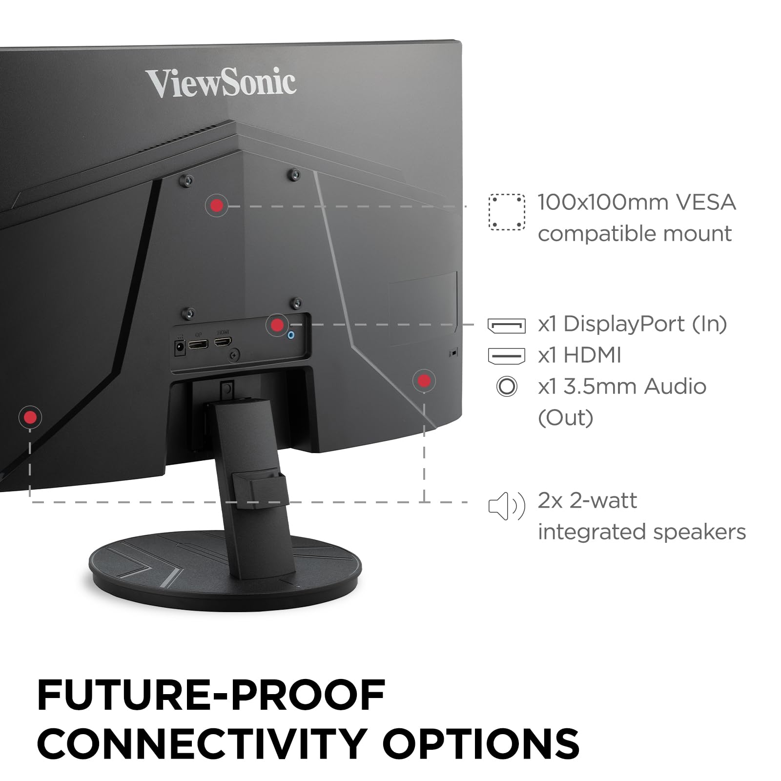 Change the way you see work and play with the ViewSonic® VA2416C monitor. Featuring a 1500R curved screen and 1080p Full HD resolution, the VA2416C delivers better clarity and a more immersive viewing experience. Exclusive ViewSonic ViewMode™ presets offer optimized screen performance for home entertainment applications such as watching movies, editing files and playing video games. Flicker-Free technology and a Blue Light filter help minimize eye strain and enhance visual comfort during extended viewing periods. Enjoy flexible connectivity options with both HDMI and DisplayPort inputs.